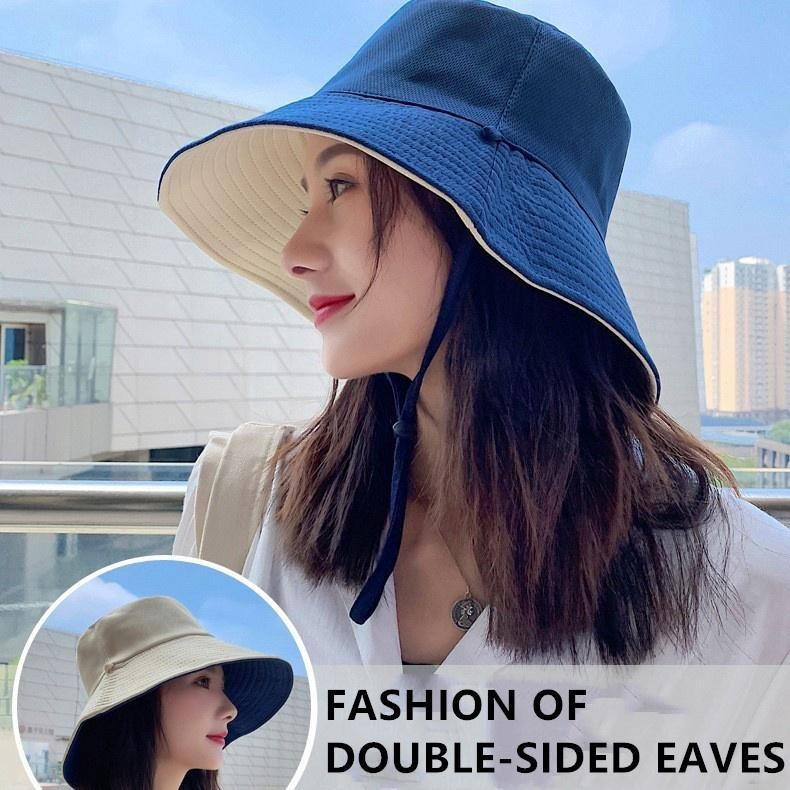 Plain Two-sided fisherman hat C04 Summer Women Bucket Hat Topi Nelayan Topi Nelayan Double Side 2 in 1 Topi 2 Warna