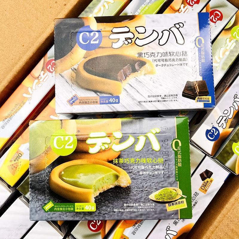 C2抹茶软心挞夹心饼干40g黑巧克力盒装芝士休闲饼干下午茶零食C2 matcha soft heart tart sandwich biscuit 40g black百味食品店