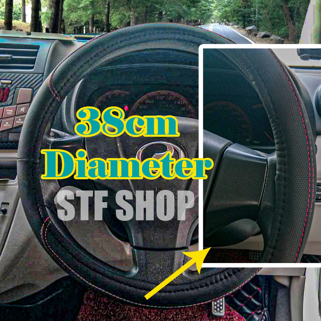 Steering Wheel Cover Wrap Black Red LINE PU Leather -36MM/38MM/40MM