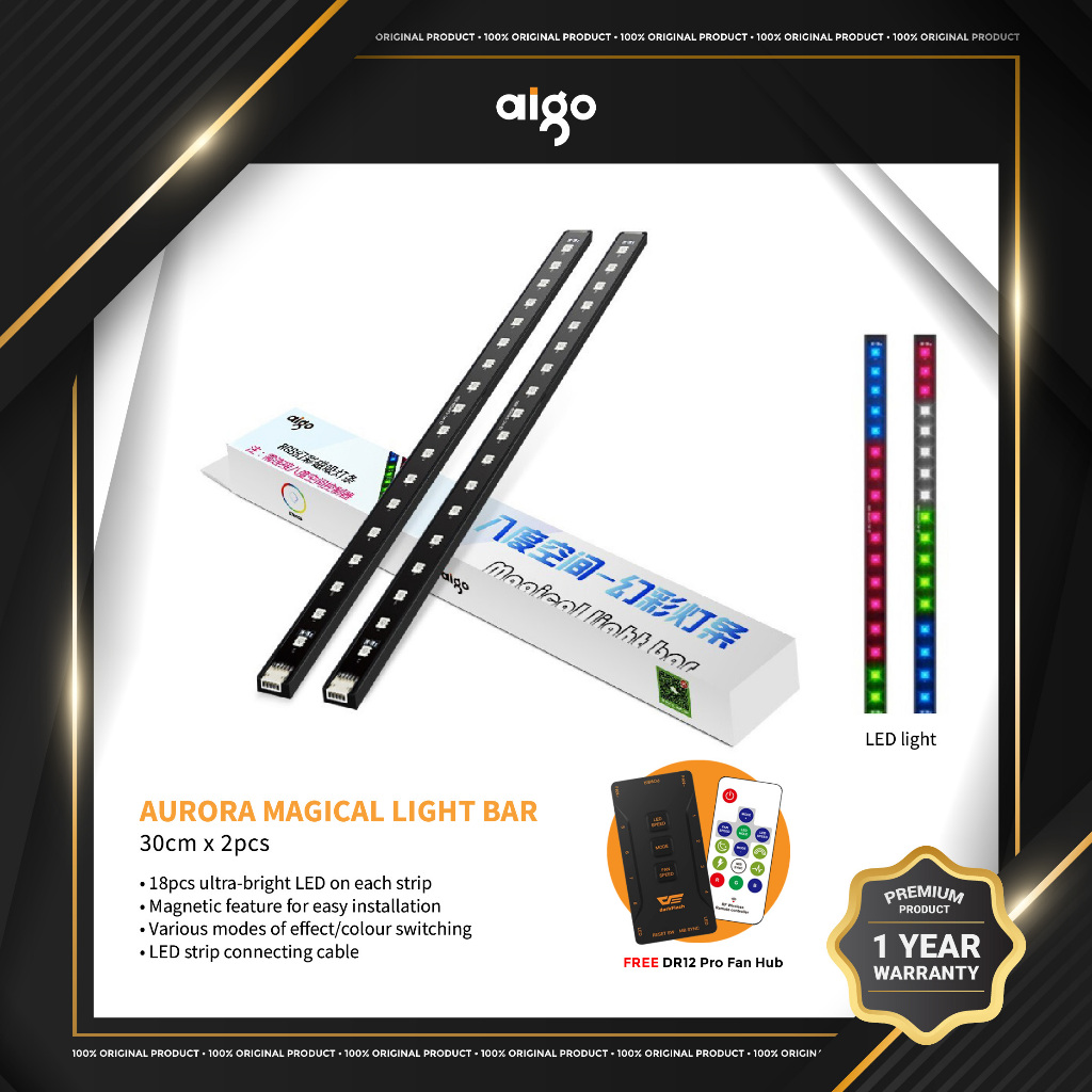 AIGO Aurora RGB Magical Light Bar 30cm x 2pcs FREE DR12 Pro Fan Hub Controller