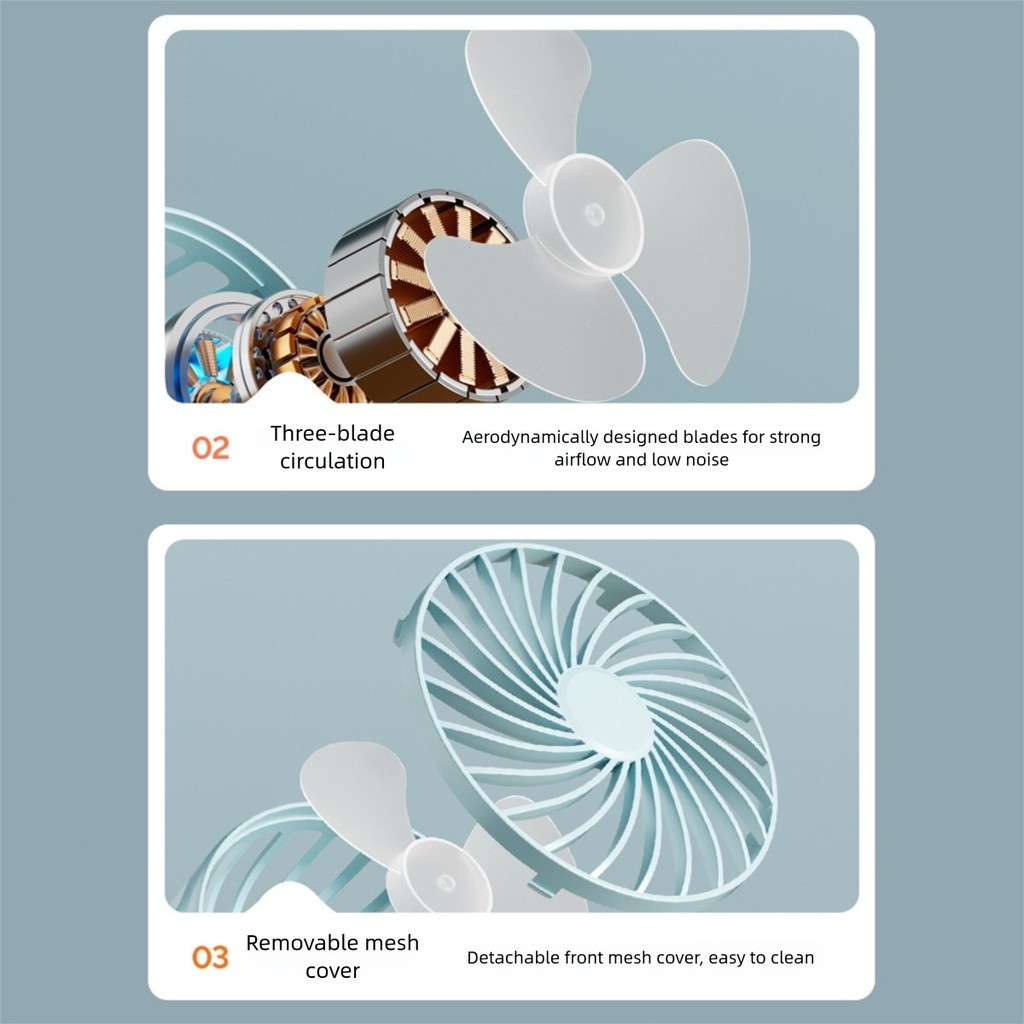 2026 NEW🔥Portable USB Rechargeable Clip Fan 3000mah 3 Speeds Strong Wind Mini Cooling Fan Office Desktop Fan
