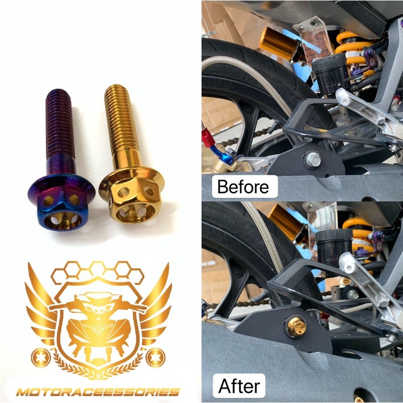 🔥(New Arrival)Screw Cover Exhaust Yamaha Y15ZR Y16ZR RS150 LC135 Gold / Titanium M8-35 Screw + Nut Sekali Complete 1 Set