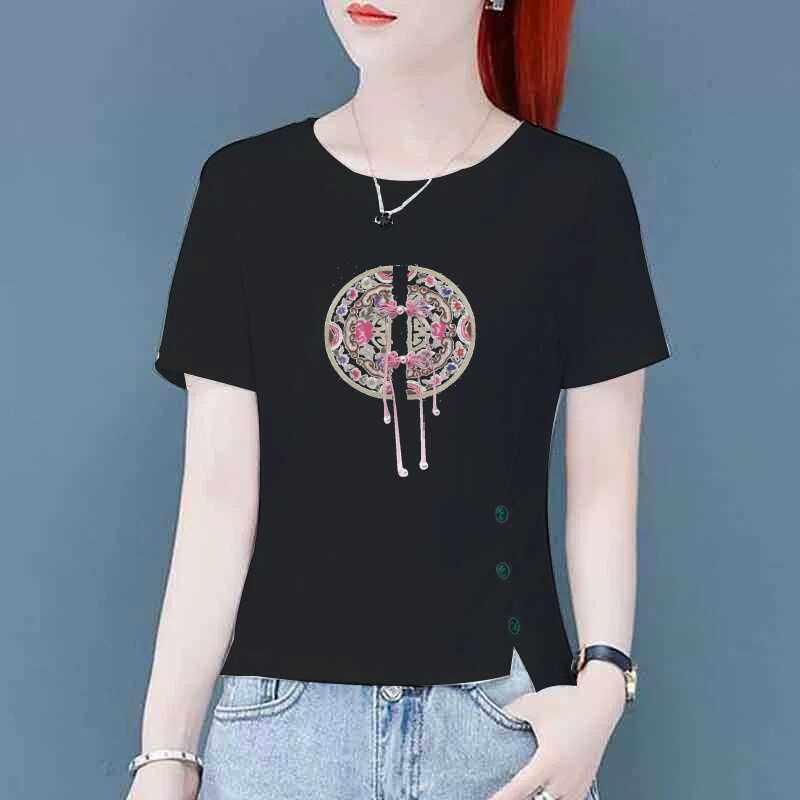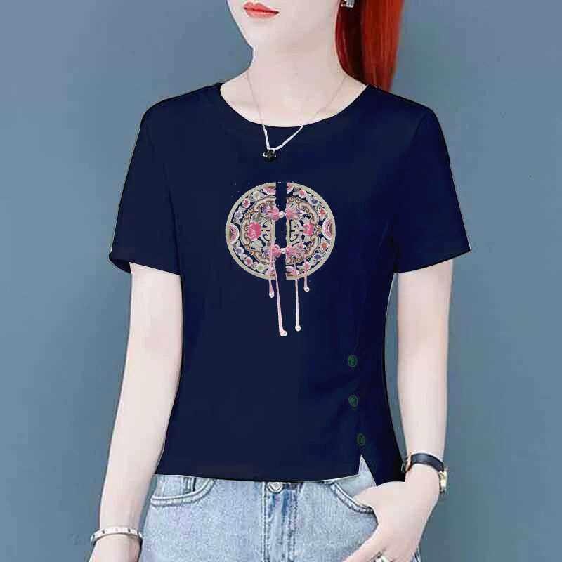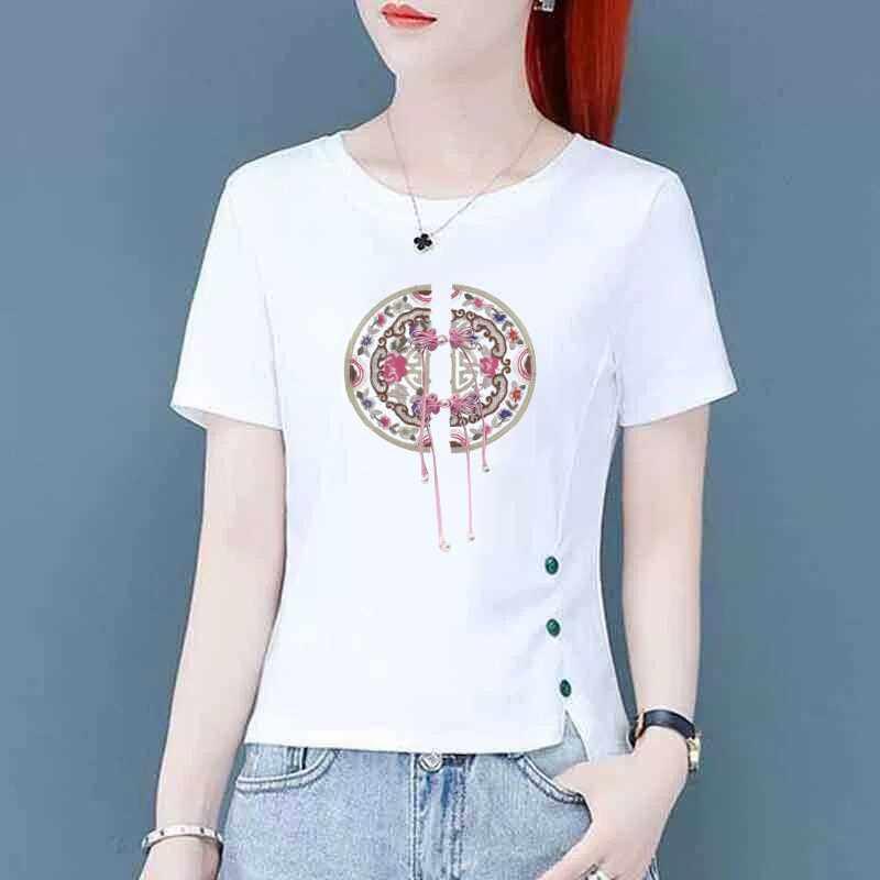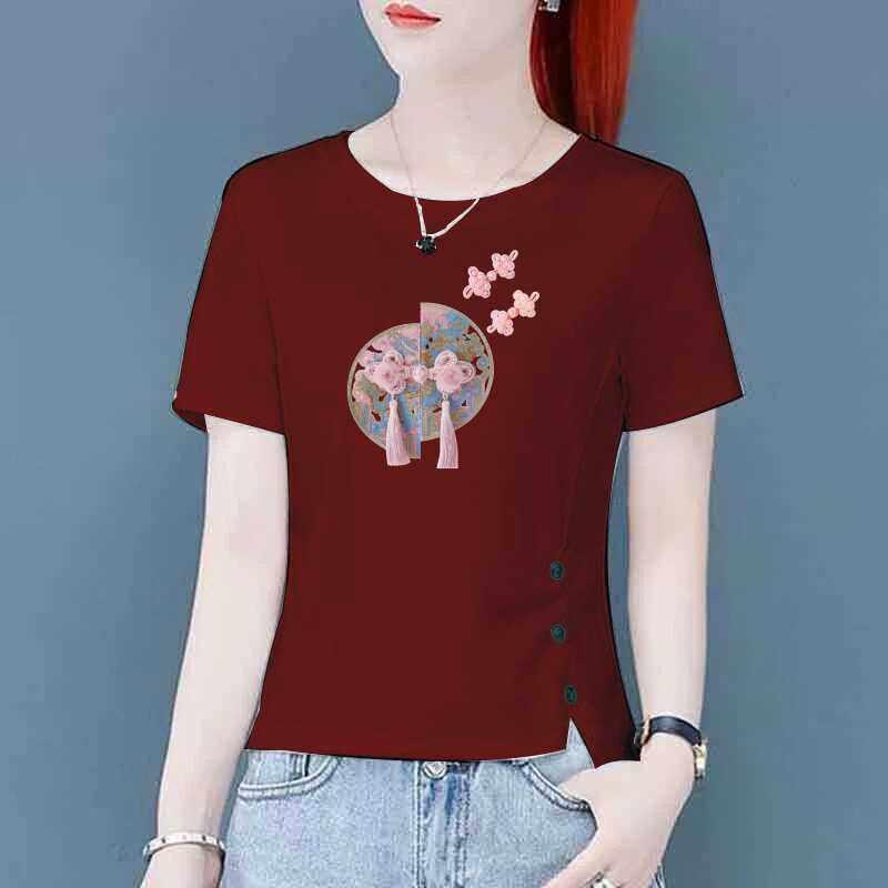好物热卖 现货新年红色T不规则下摆短袖t恤女夏季新款新中式国风设计感宽松短款上衣New Year Red T Irregular Hem Short Sleeve T-Shirt for Womenwuzhao