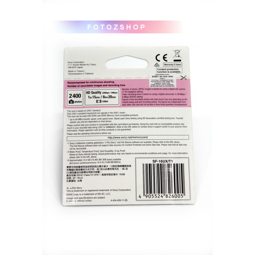 Sony SDHC UHS-I 16GB 94/MB Class 10 HD Memory Card