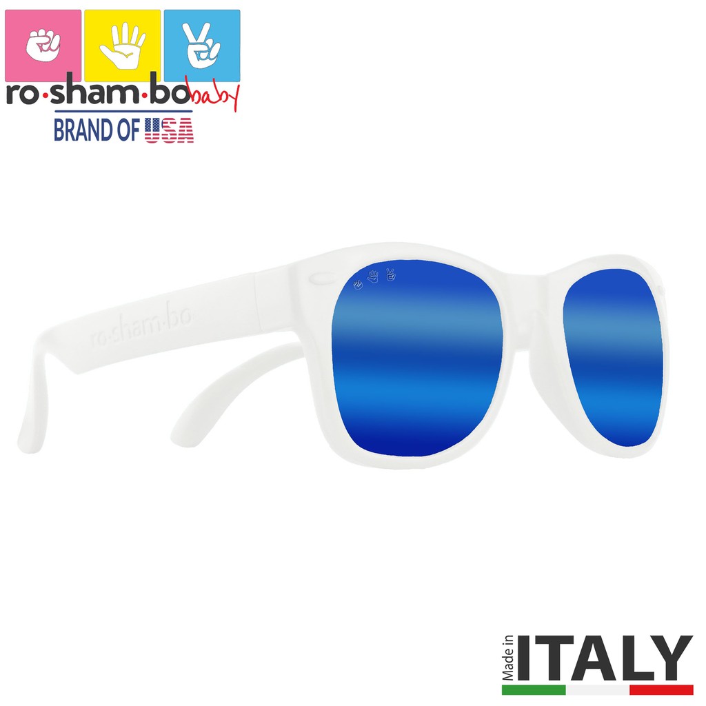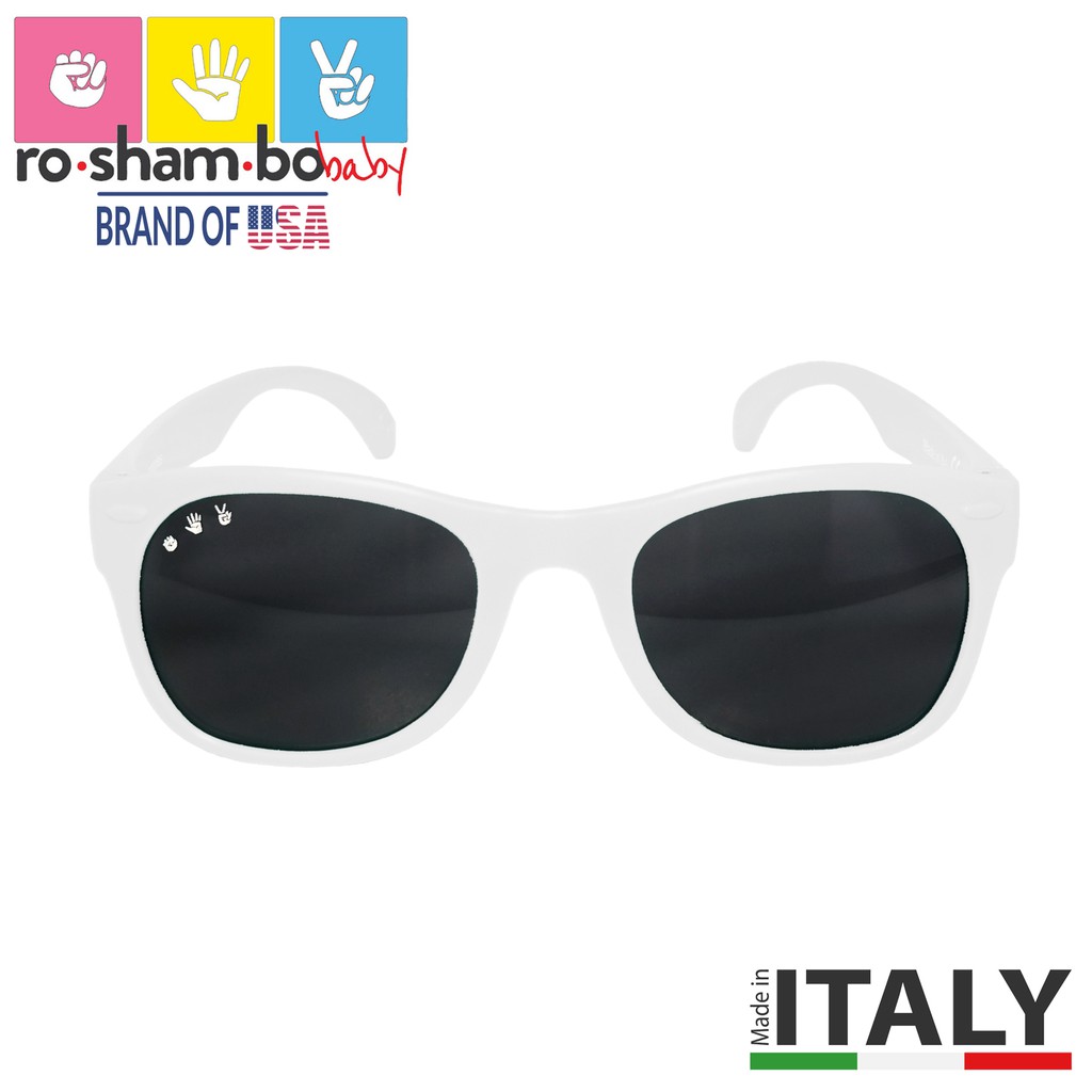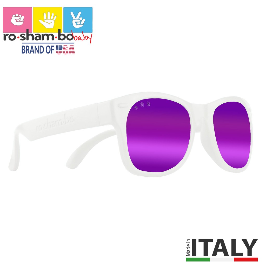 Baby Age 0-2 Sunglasses-White Frame- Roshambo baby Sunglasses -Made in Italy. 100% UVA/B/C protection!