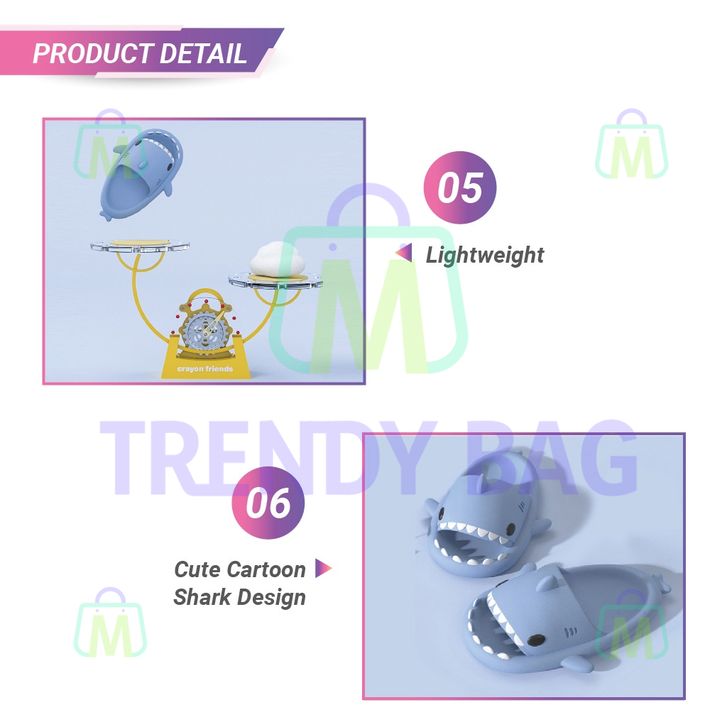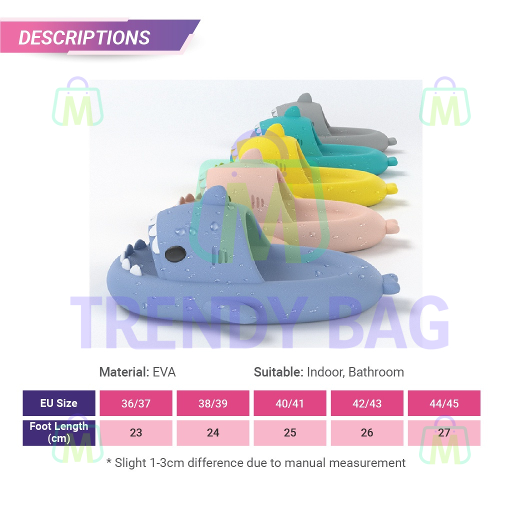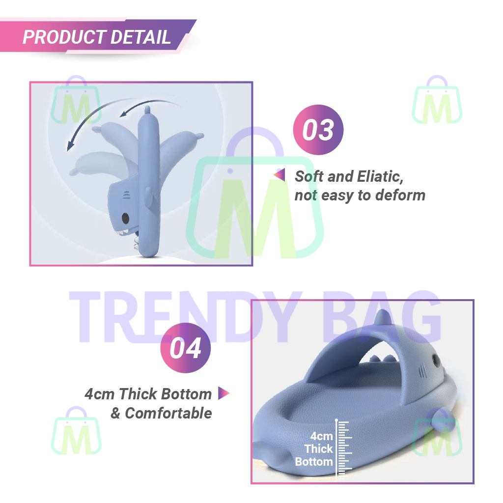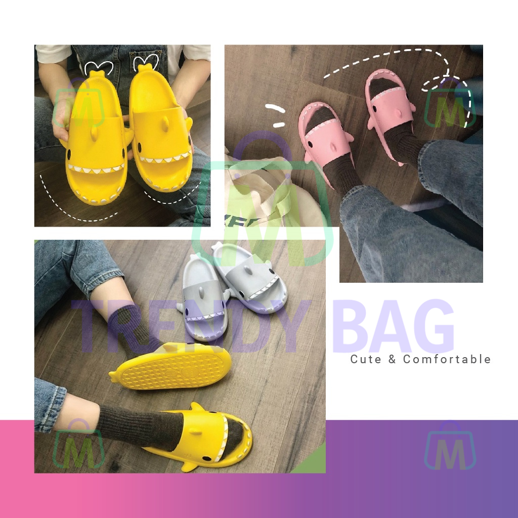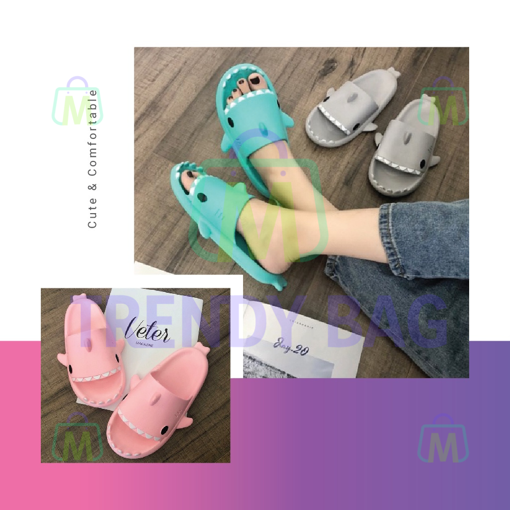 Unisex Selipar Viral Ikan Jerung EVA Cute Cartoon Slipper Anti Slip Shark Sandal for Indoor Bathroom 室内软底防滑鲨鱼拖鞋