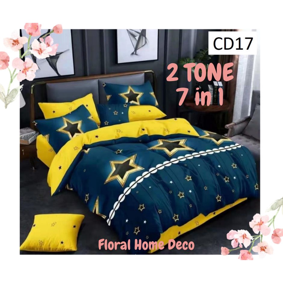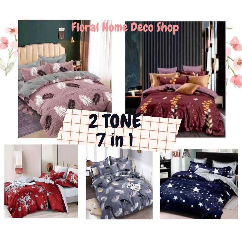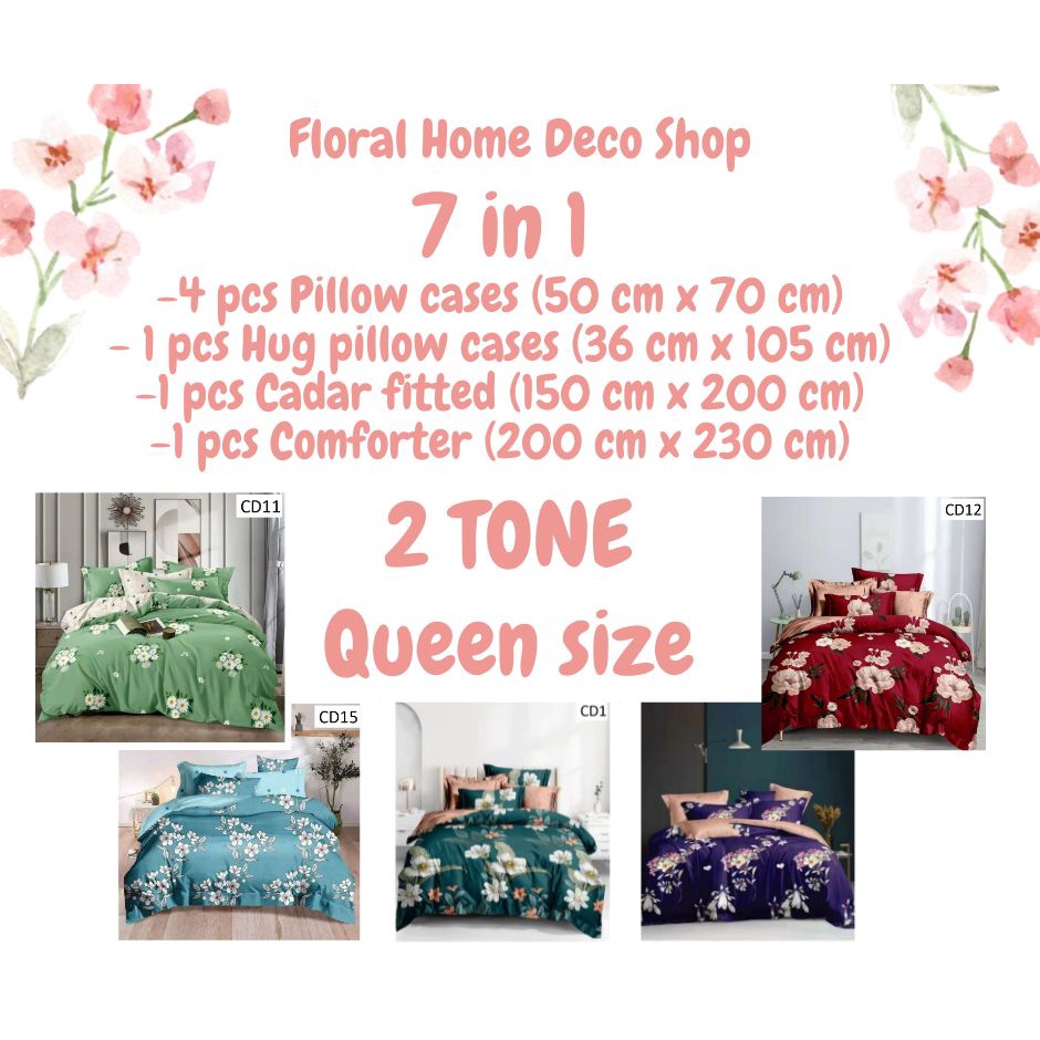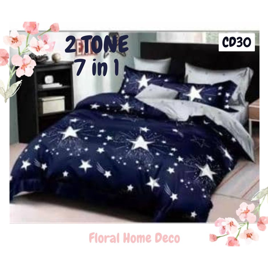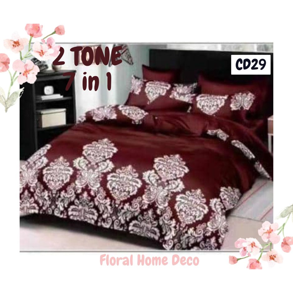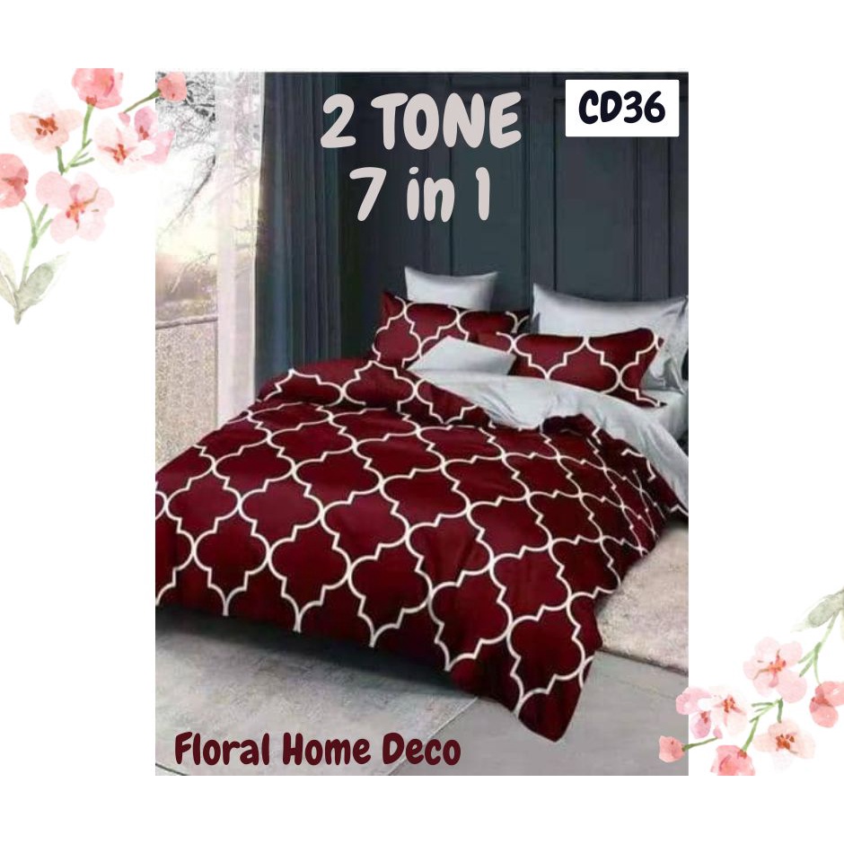 (2 TONE) 7 IN 1 SET CADAR WITH COMFORTER QUEEN SIZE