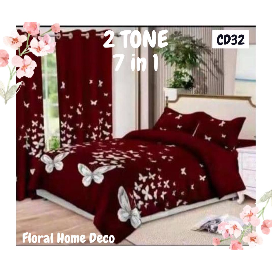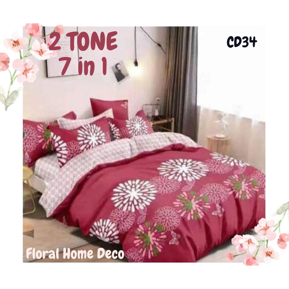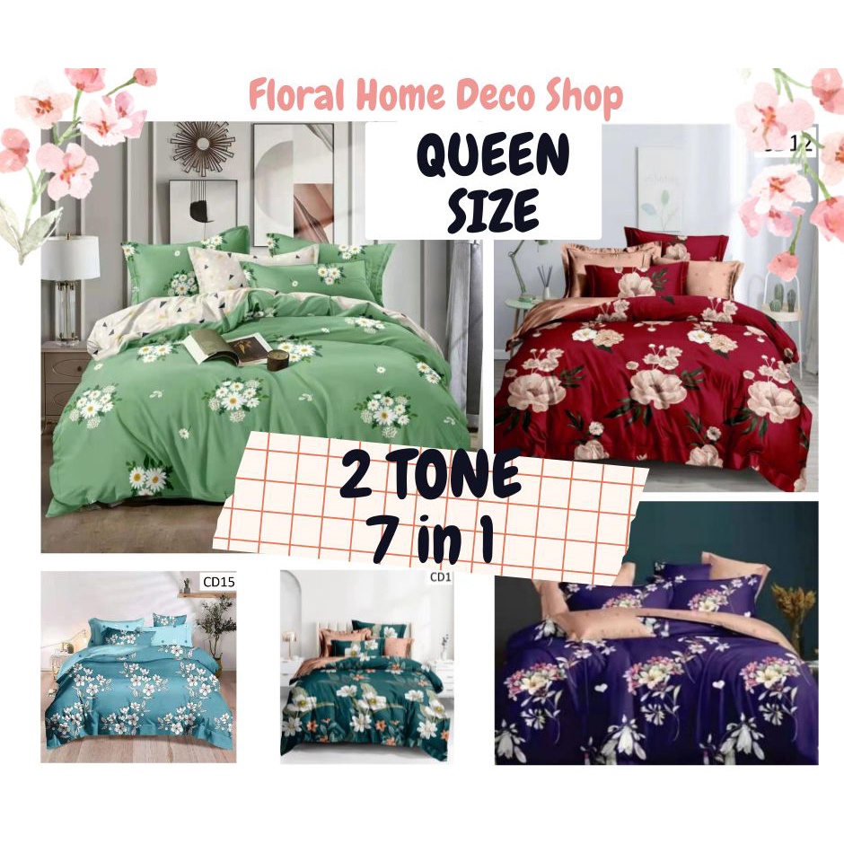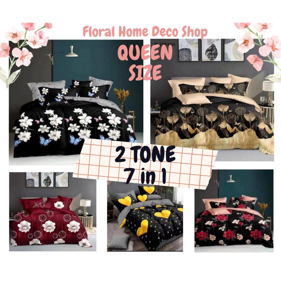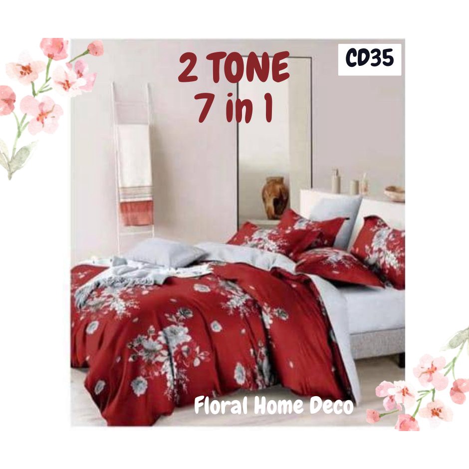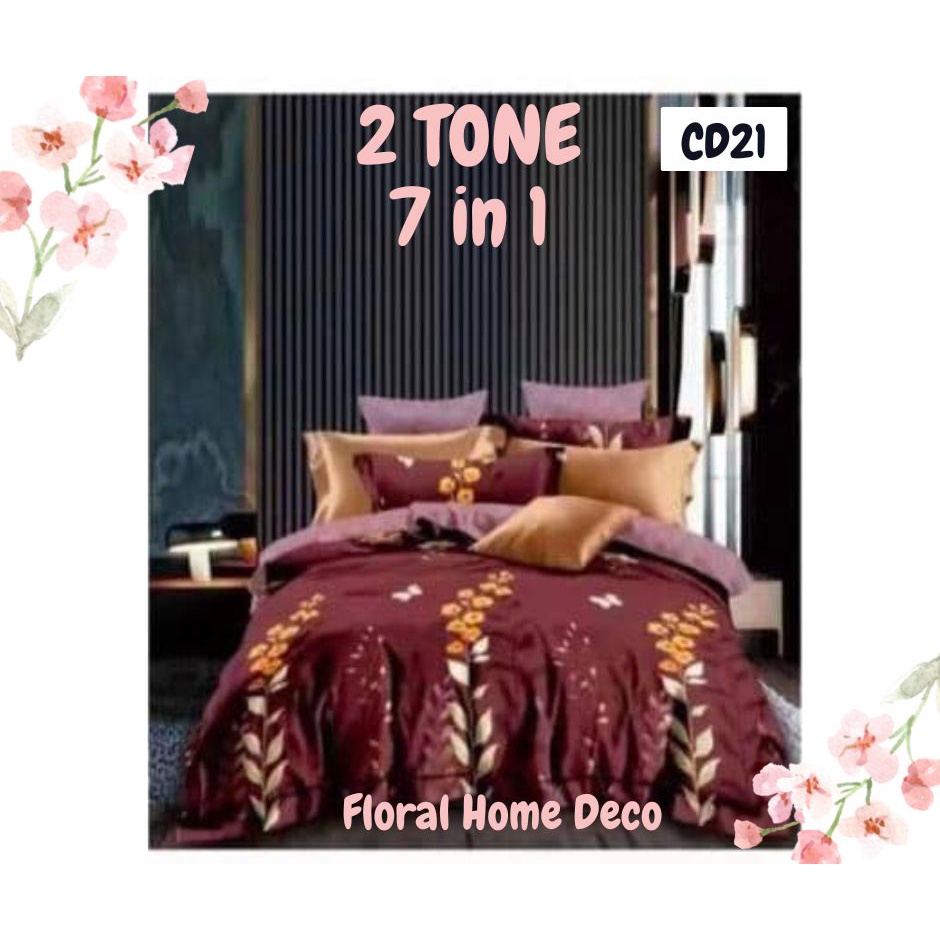 (2 TONE) 7 IN 1 SET CADAR WITH COMFORTER QUEEN SIZE