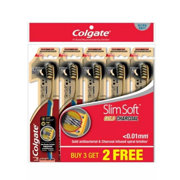 COLGATE SlimSoft Charcoal Gold Toothbrush Valuepack 5s