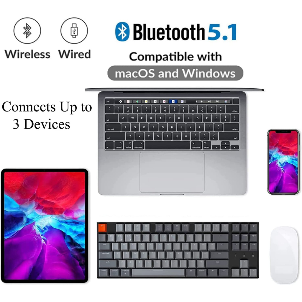 [FLASH SALE 🔥] Keychron K8│RGB Wireless Mechanical Keyboard│TKL Layout│Hot-Swappable│Aluminium Body│Type-C│Gateron