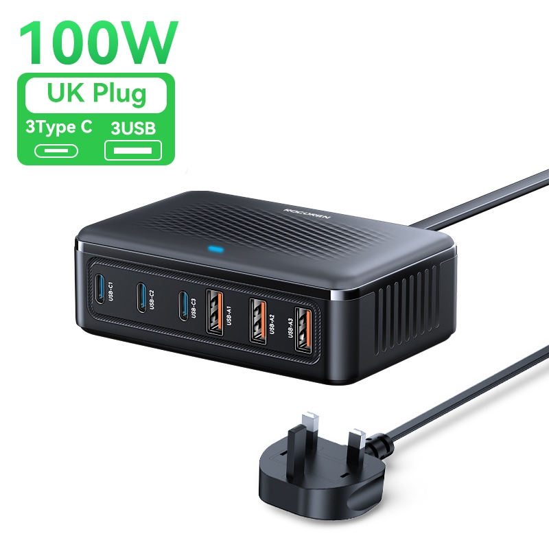 Rocoren Desktop USB Charger Type C 200W Fast Charging Portable Power Station 100W Multi Ports Charger For iPhone Samsung