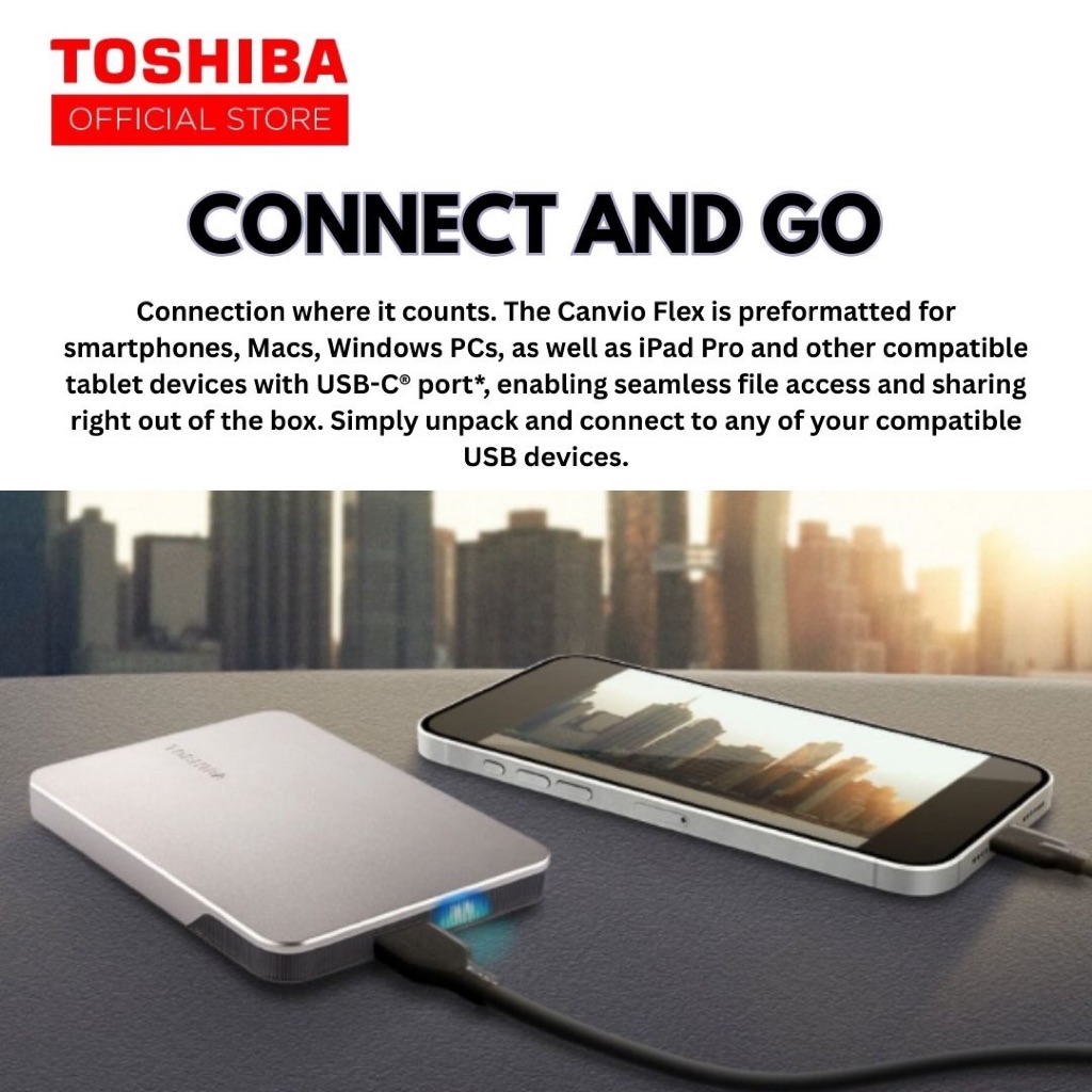 Toshiba Canvio Flex USB-C Portable External Hard Drive USB 3.0 Hard Drive for Windows and Mac (1TB/2TB/4TB)