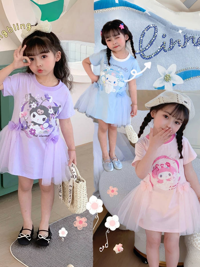 PRINCESS KESLI 1-9 Years Short Sleeved Baju Budak Perempuan Kuromi Princess Dresses For Kids Girl Dress Budak Perempuan