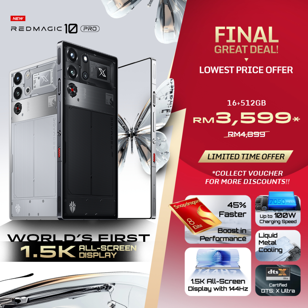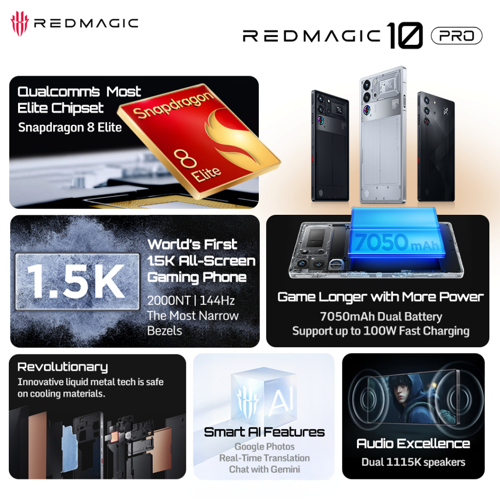 [HOT] REDMAGIC 10 Pro | World's First 1.5K All-Screen Display | 144Hz | Snapdragon 8 Elite | 7050mAh + 100W