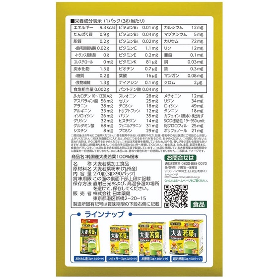 [JAPAN] 金の青汁 純国産大麦若葉100%粉末 Barley Green Juice Powder 46/90bags