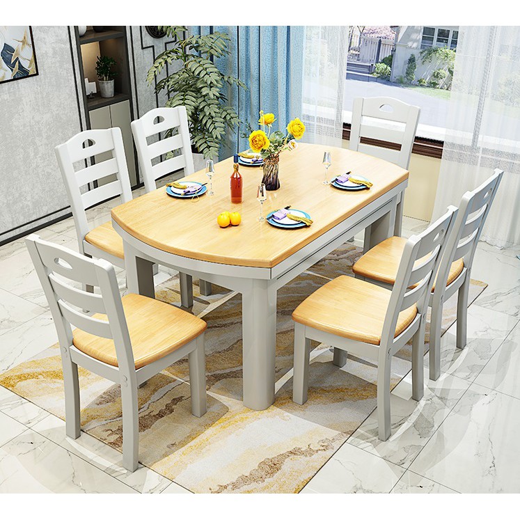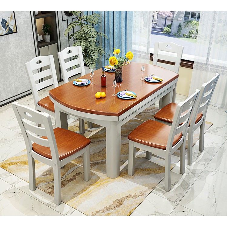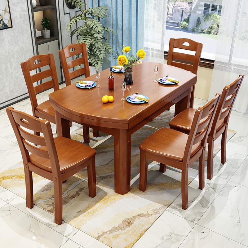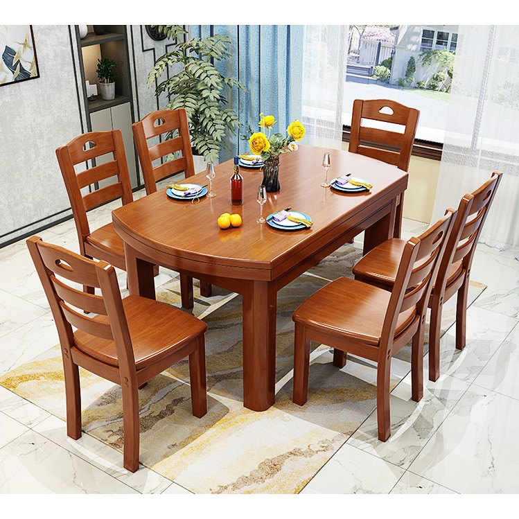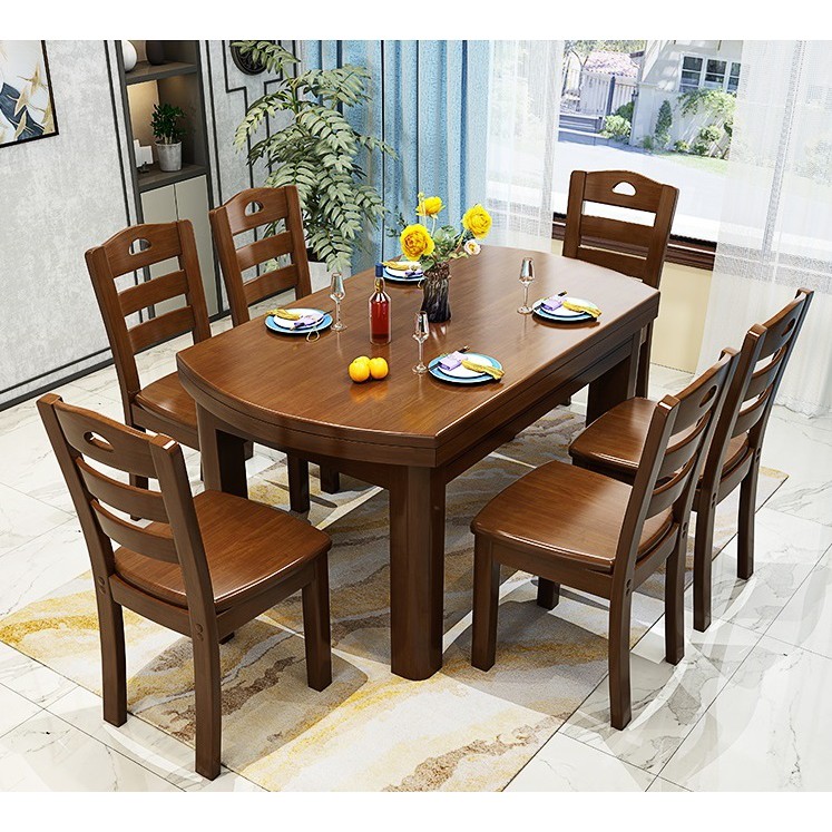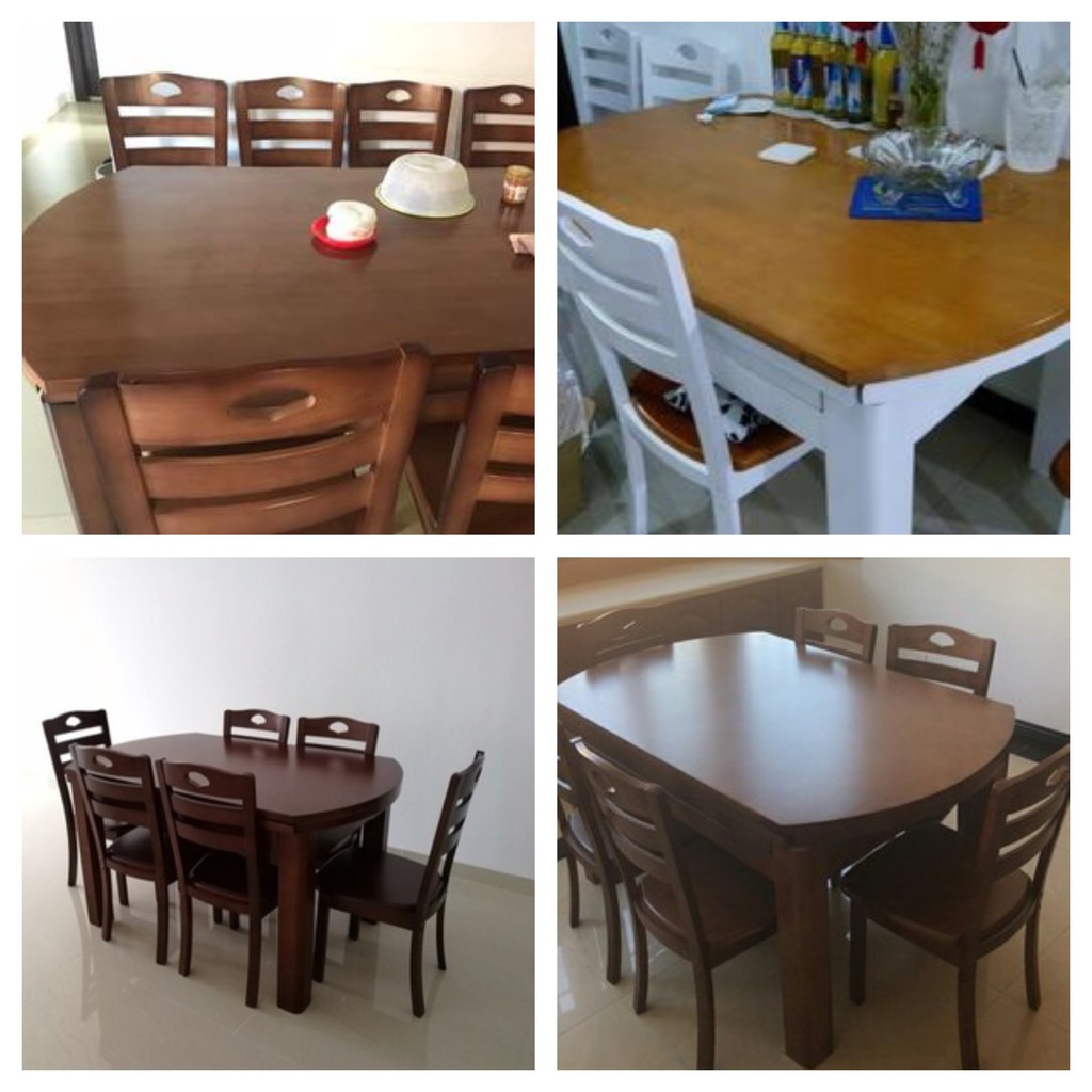 Extendable Dining Table Chairs Set Round Solid Wood 6 8 10 Seater Table Meja Makan Kerusi Kayu Ruang Makan Untuk 8 Orang