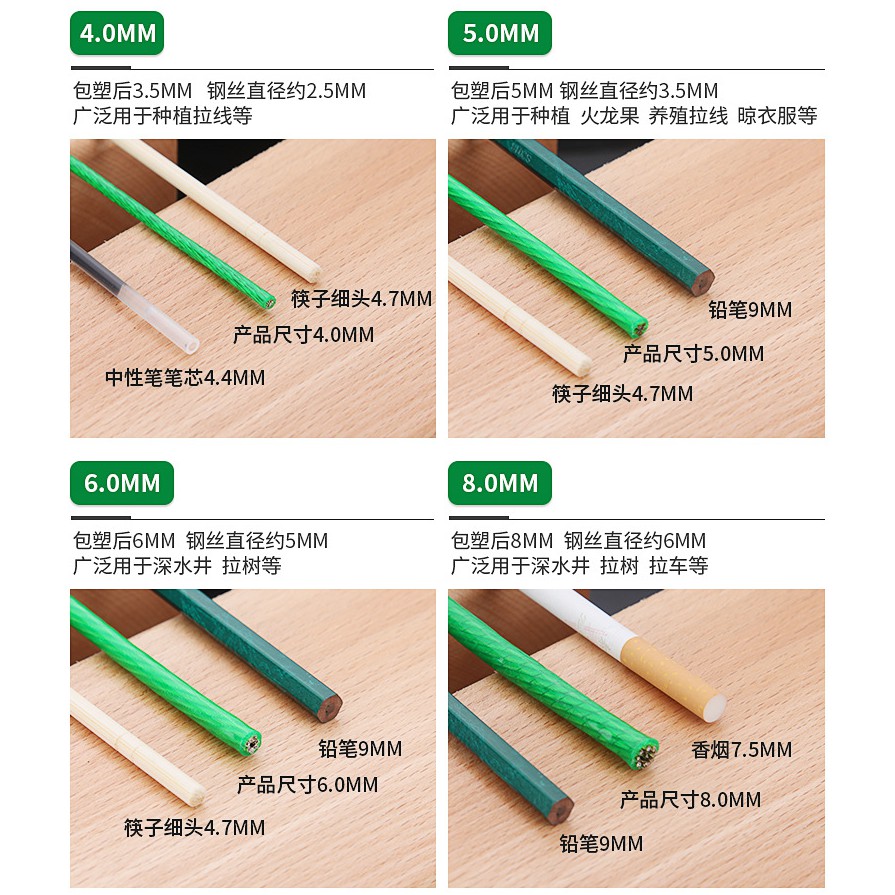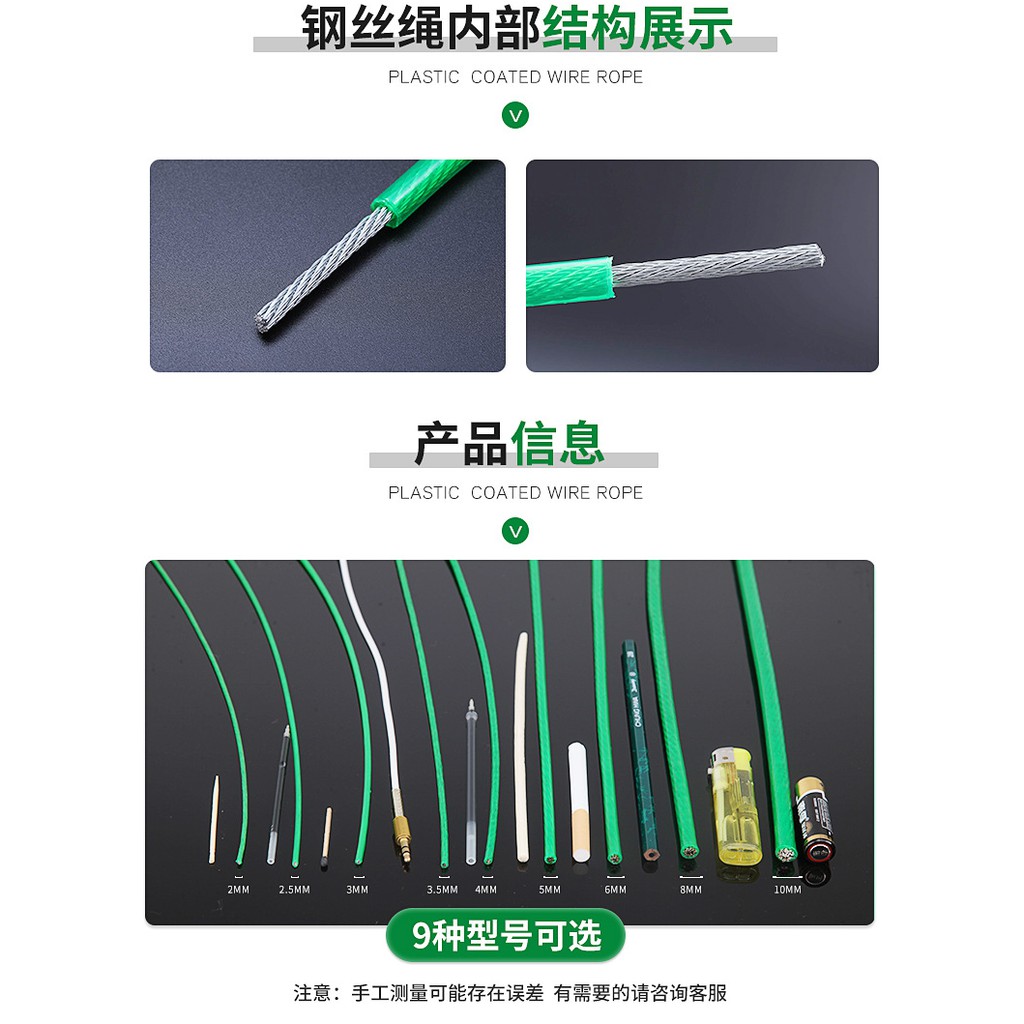 MKR Wire Rope Stainless Steel 304 with Green PVC Plastic Coat 2mm/2.5mm/3mm/5mm