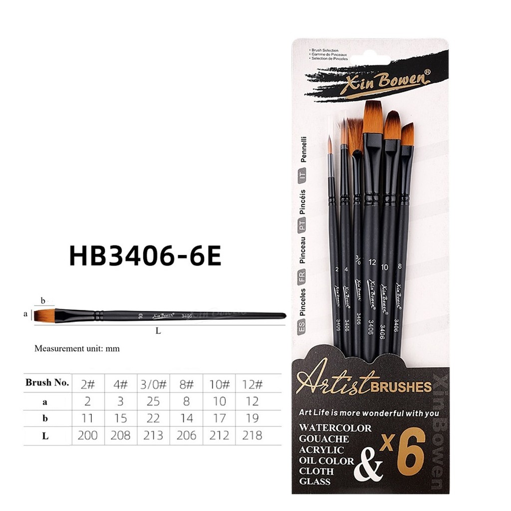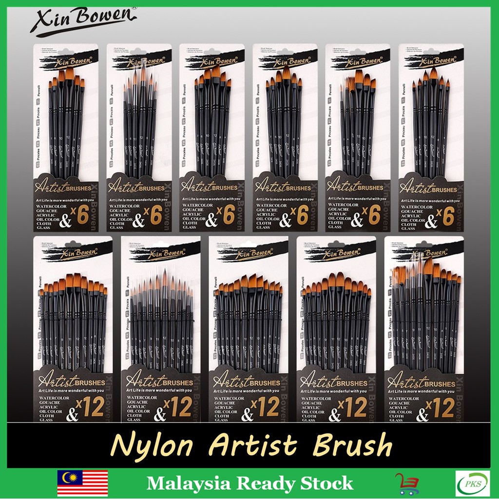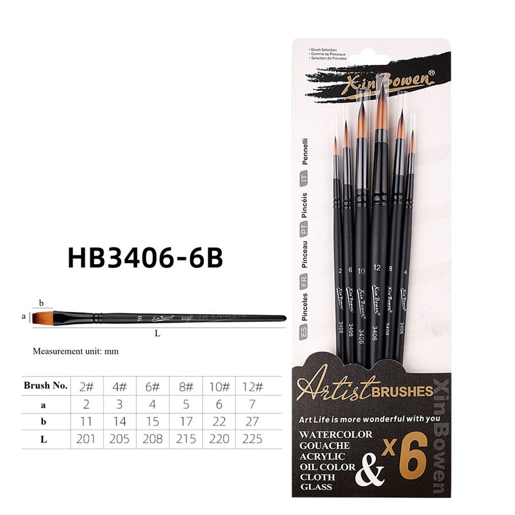 6pcs/12pcs Wood Handle Paint Brush Set Oil Painting Artist Nylon Brush