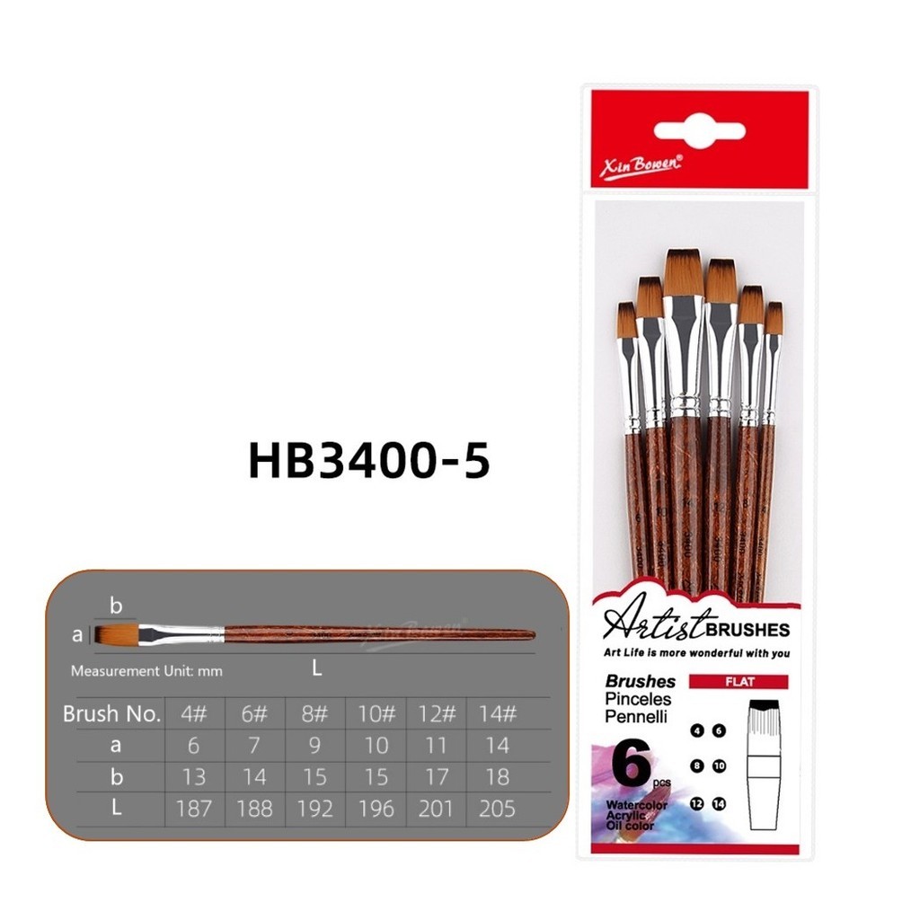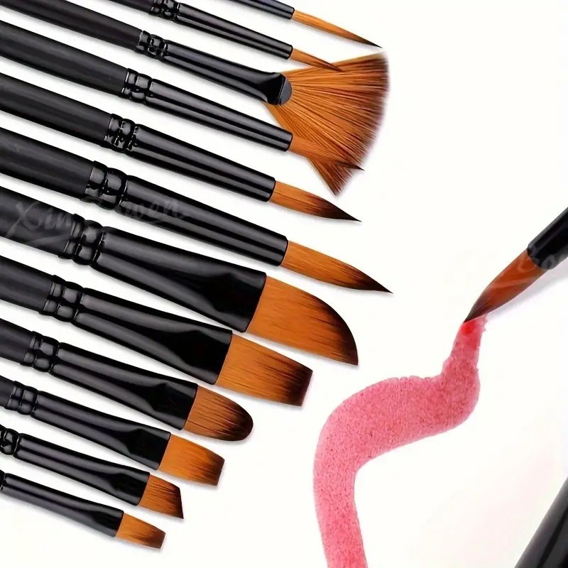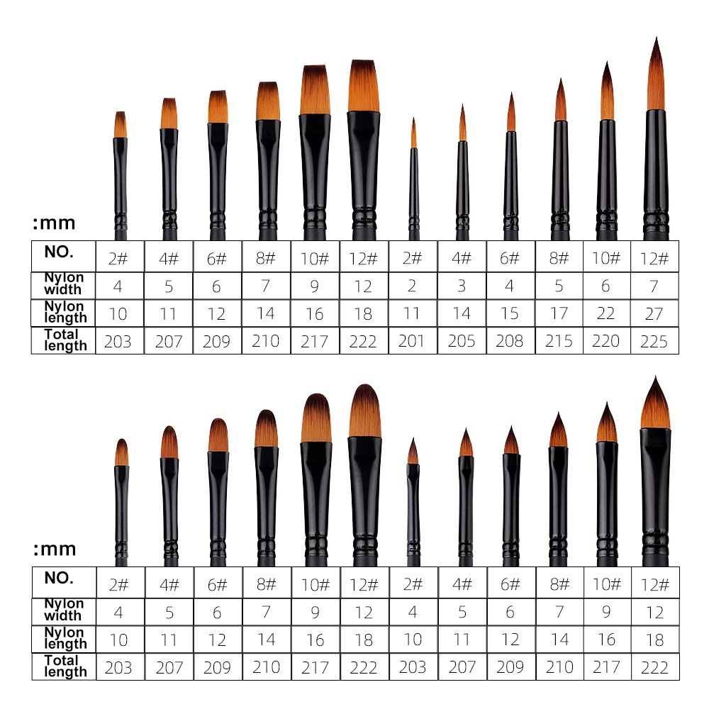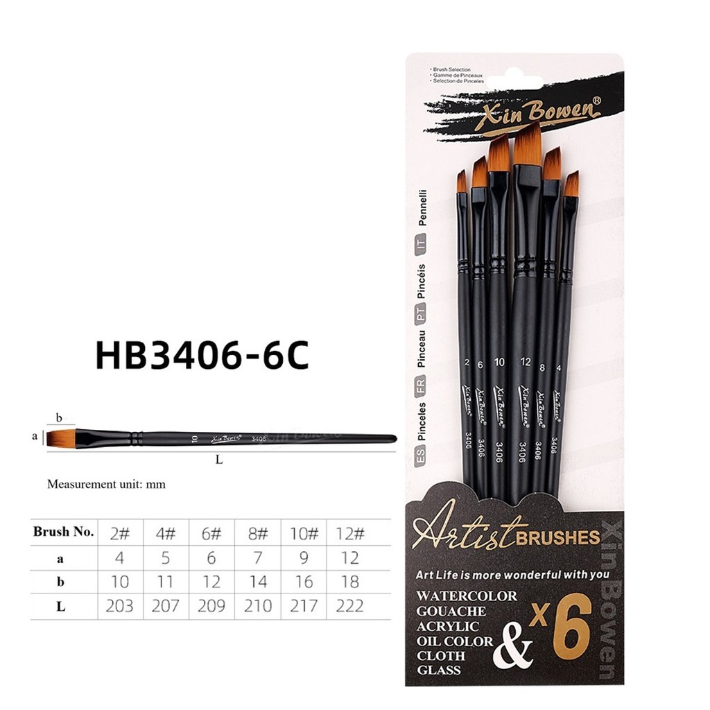 6pcs/12pcs Wood Handle Paint Brush Set Oil Painting Artist Nylon Brush