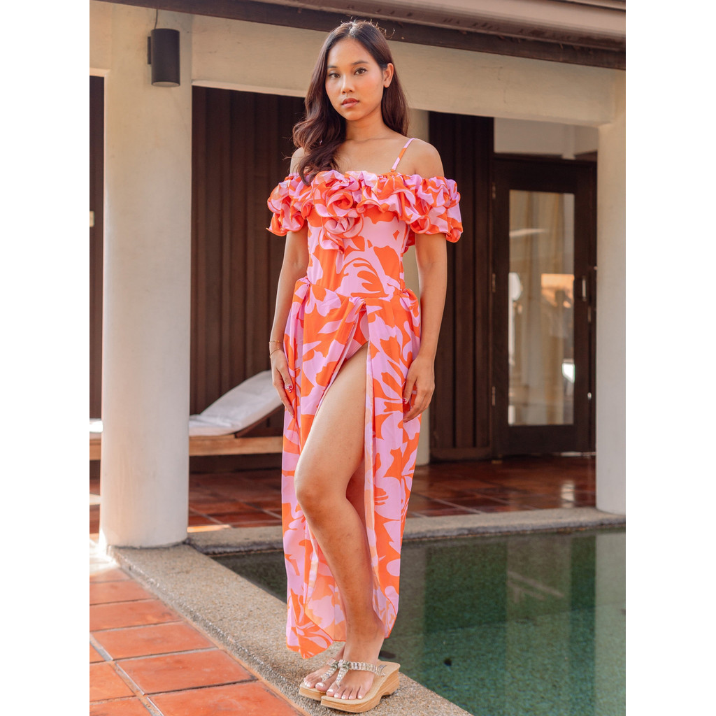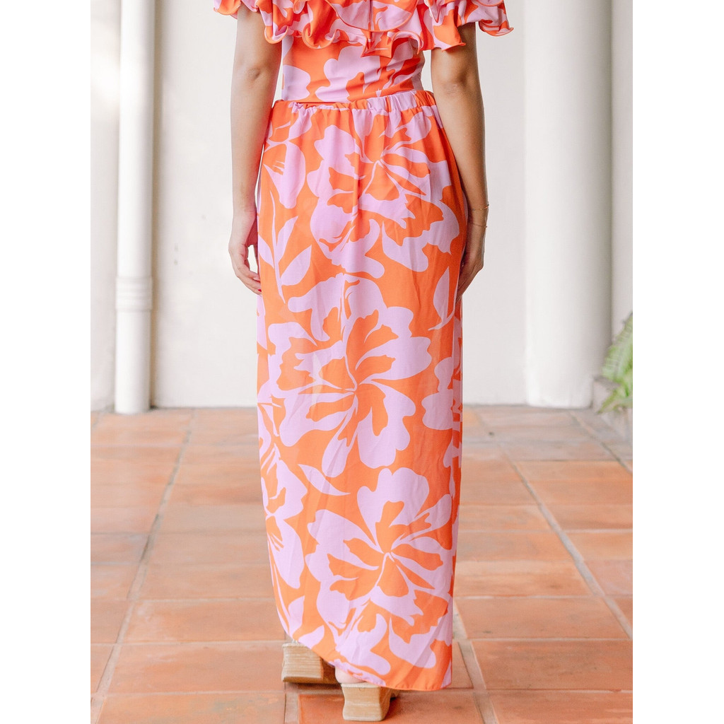 OPULENCE ETHEREAL Esmaray Chiffon Twist Knot Skirt in Orange Pink