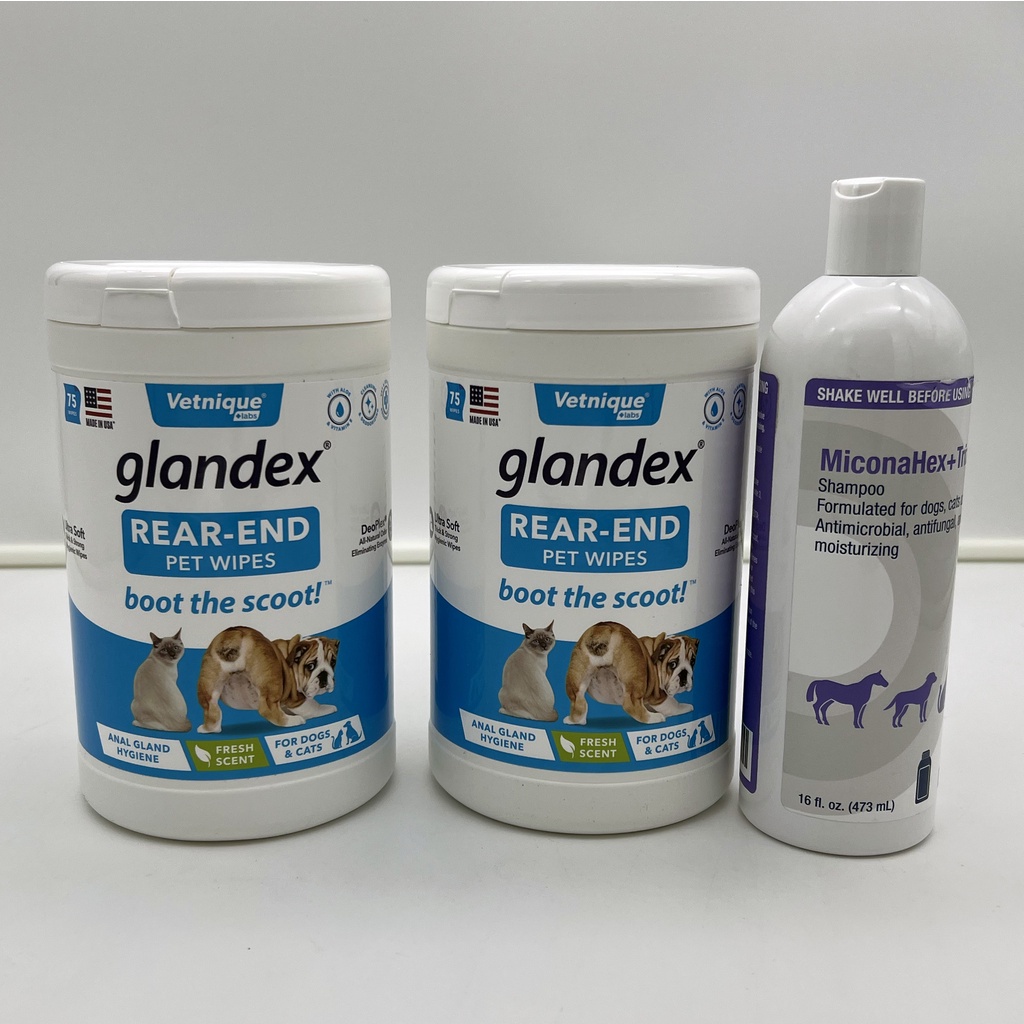75/100c Vetnique Glandex Rear-End Wipes for Dogs & Cats Rectal Sac Problems Deodorizing Wet Wipes Waterless Bath