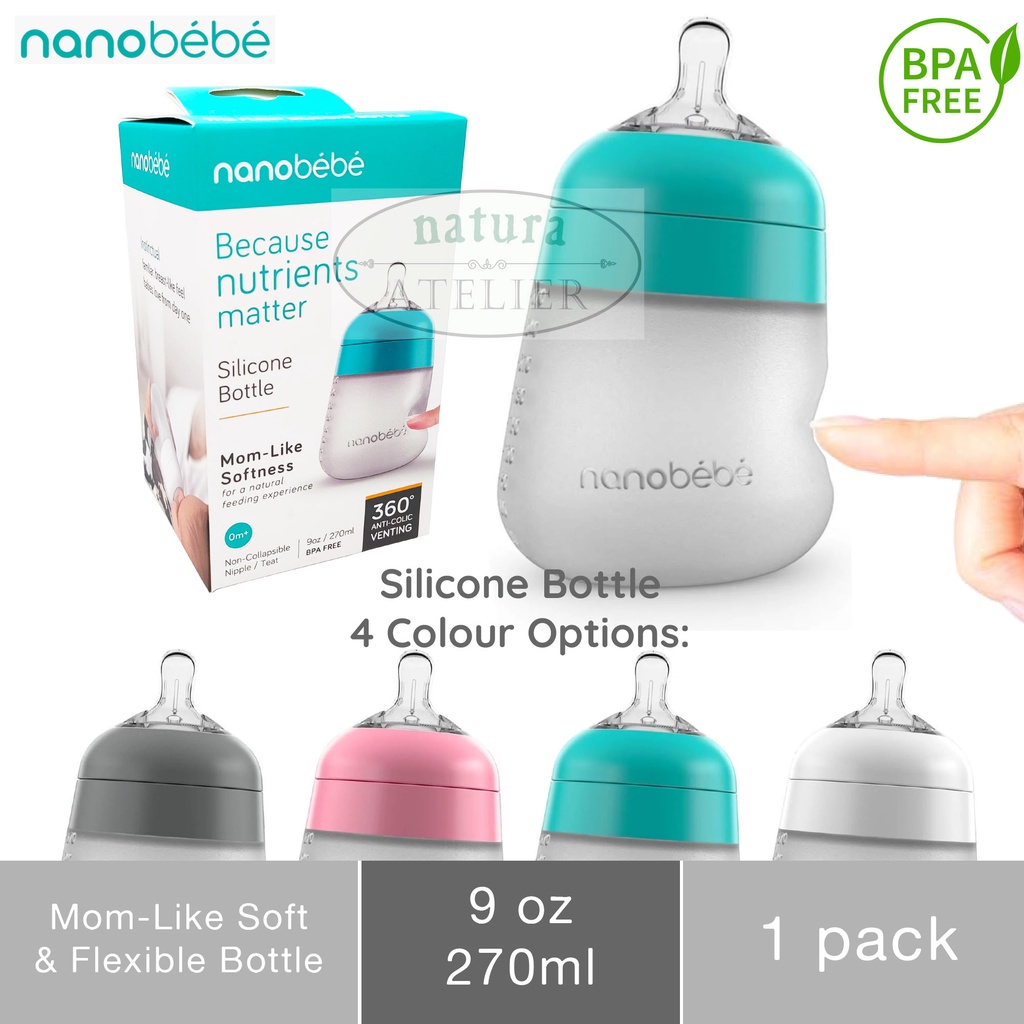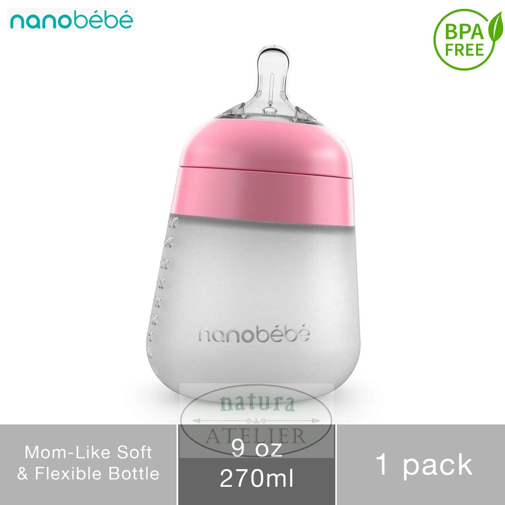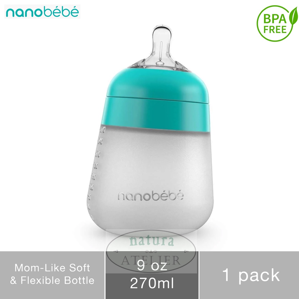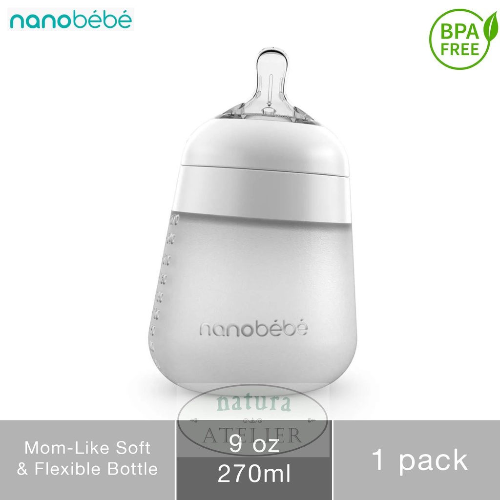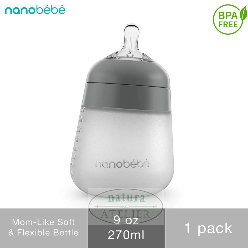 Nanobebe Flexy Silicone Breastmilk Baby Bottle, Soft & Flexible, Botol Susu Bayi, 9oz / 270ml, 1pk