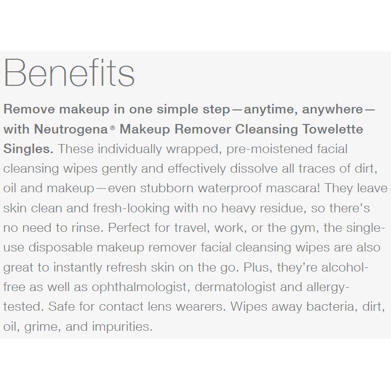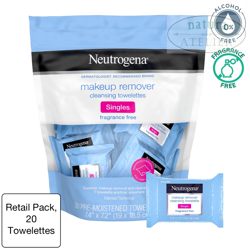 Neutrogena Makeup Remover Cleansing Towelettes Wet Tissue Wipes, Regular / Fragrance Free, Singles, Individual Packs