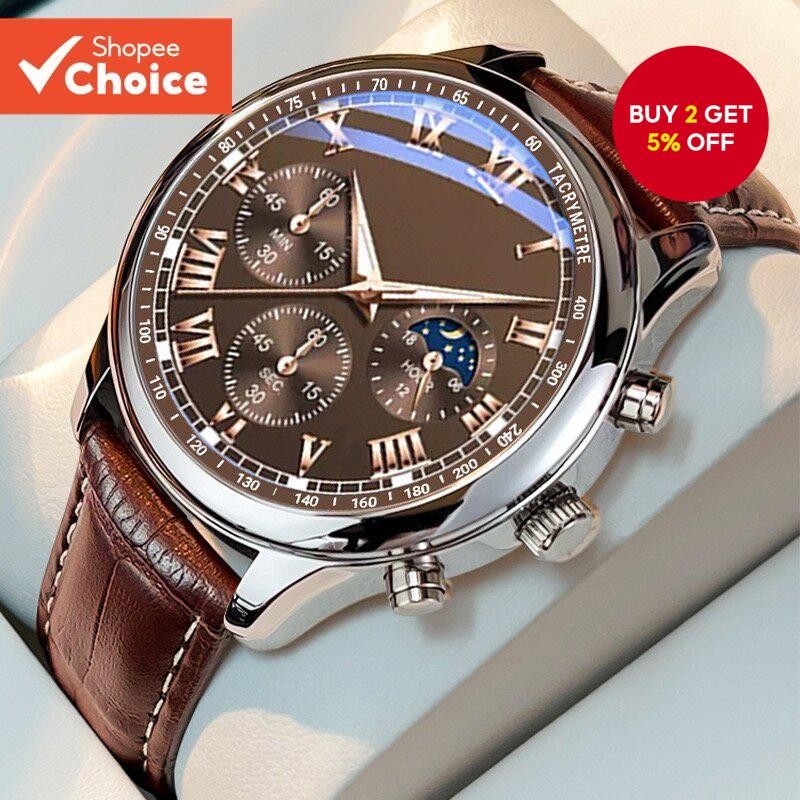 Trendy Men's Business Quartz Watch, Fashionable Leather Strap, Casual & Sports Style