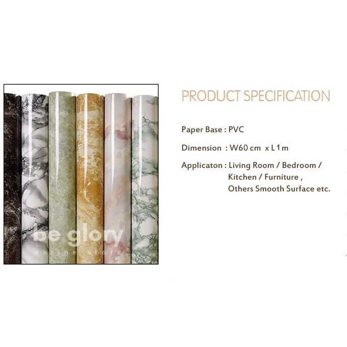 Marble PVC Self Adhesive Waterproof Sticker 60cm x 1m Wallpaper for Toilet Bedroom Kertas Dinding