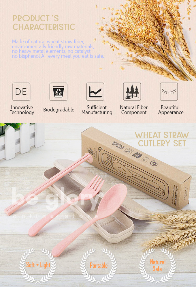 Portable Wheat Straw Cutlery Set with Box Spoon Fork Chopstick Dinnerware Set Reusable Cutlery Set Travel Set Sudu Garfu