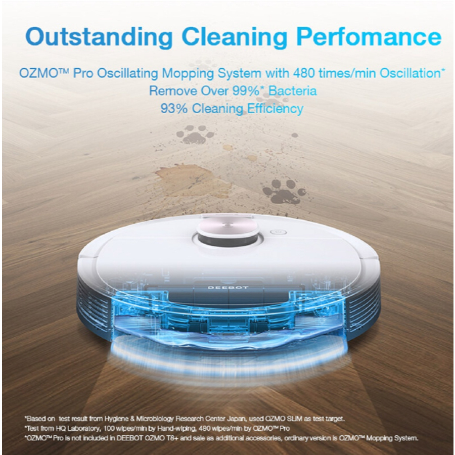 Ecovacs Deebot Ozmo T8+ Powerful in-depth cleaning with Auto-Empty Station / TrueMapping Technology (Black)