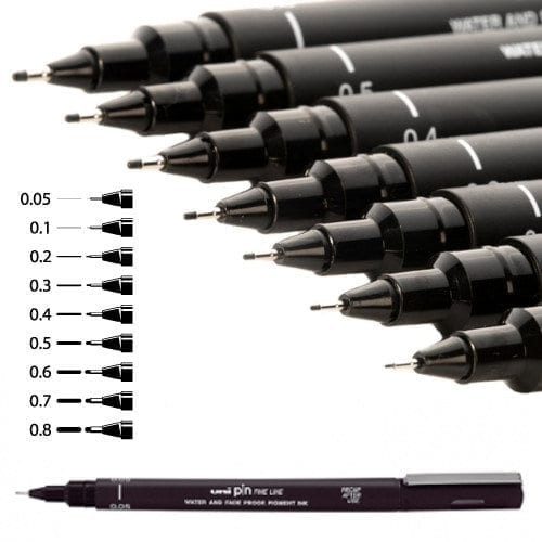 UNI PIN Pigment Technical Fine Line Drawing Pen PIN-200 - BLACK INK ( 005 / 01 / 02 / 03 / 04 / 05 / 06 / 07 / 08 )