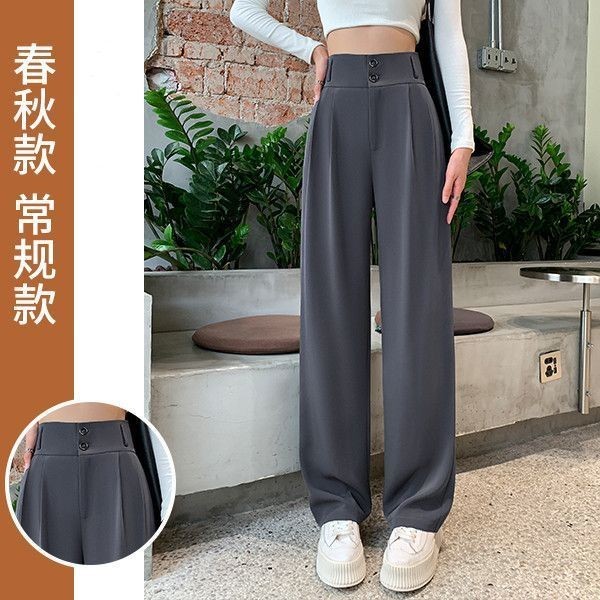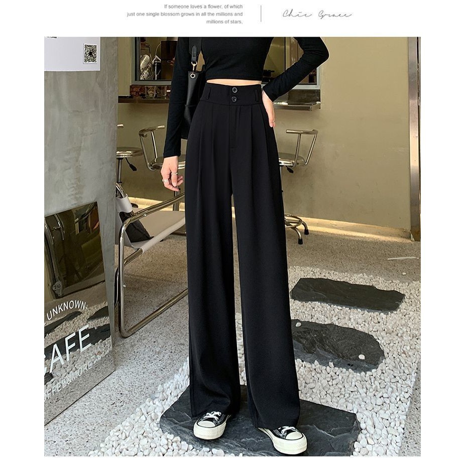 西裝褲女高腰 闊腿褲 女 韓版 高腰 2024快速出货黑色西装裤女春新款高腰垂感宽松显瘦直筒高级感休闲阔腿裤 2024 Fast Shipping Black Suit Pants Women Spring New Style High Waist Drape Loose Slimmer Look Straight High-End Casual Wide Leg Pants
