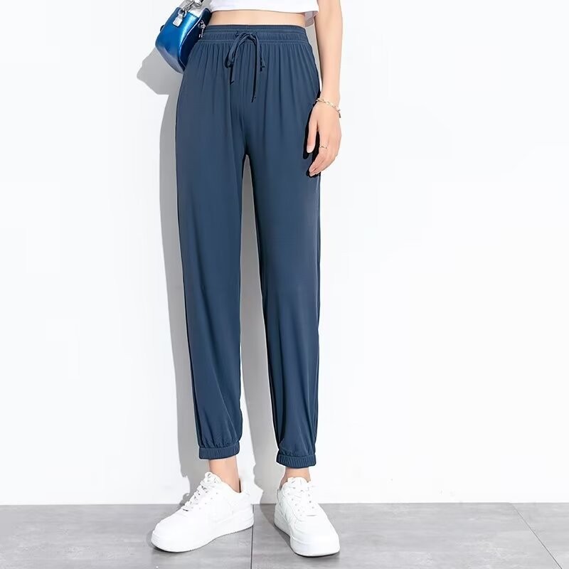 冰絲 運動褲 女 大碼 Thin leg tied casual pants for women, long pants for women 冰丝运动裤女夏季薄款束脚休闲裤夏天宽松速干胖MM大码 Ice Silk Sweatpants Women Summer Thin Style Casual Pants Summer Loose Quick-Drying Fat MM Large Size