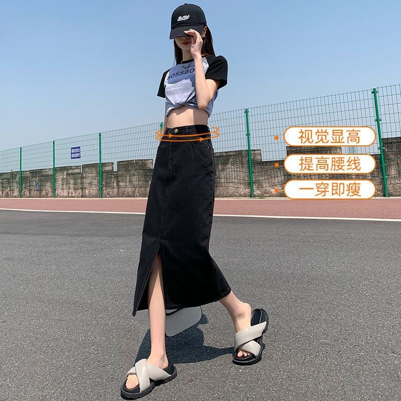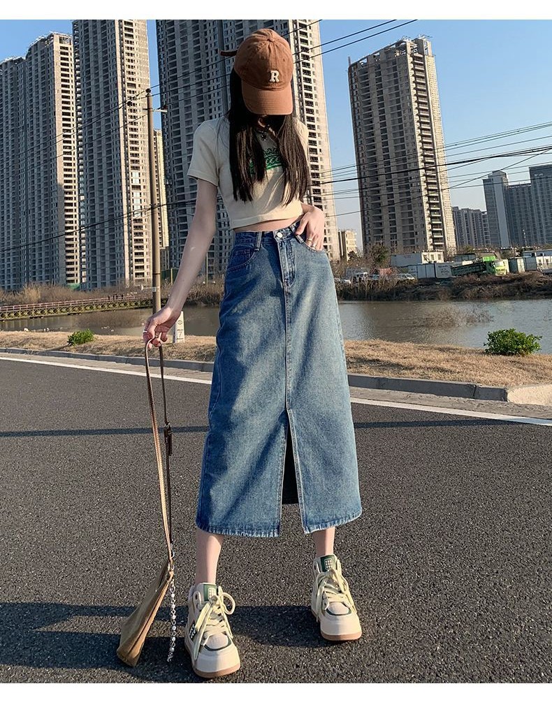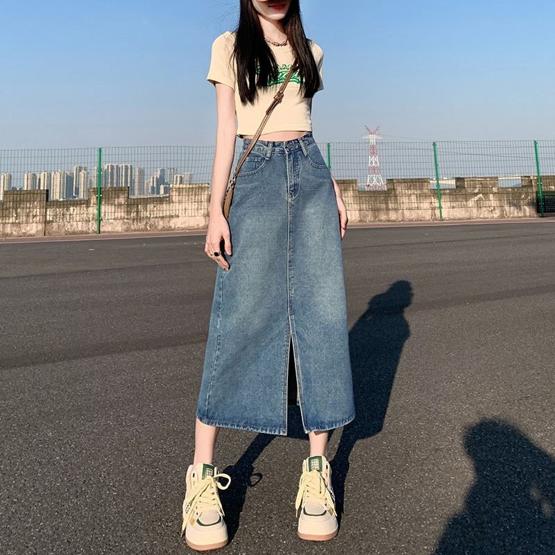 YURUMA S-6XL Plus Size Korean High Waist Denim Maxi Skirt Retro A-Line Long Skirts For Women