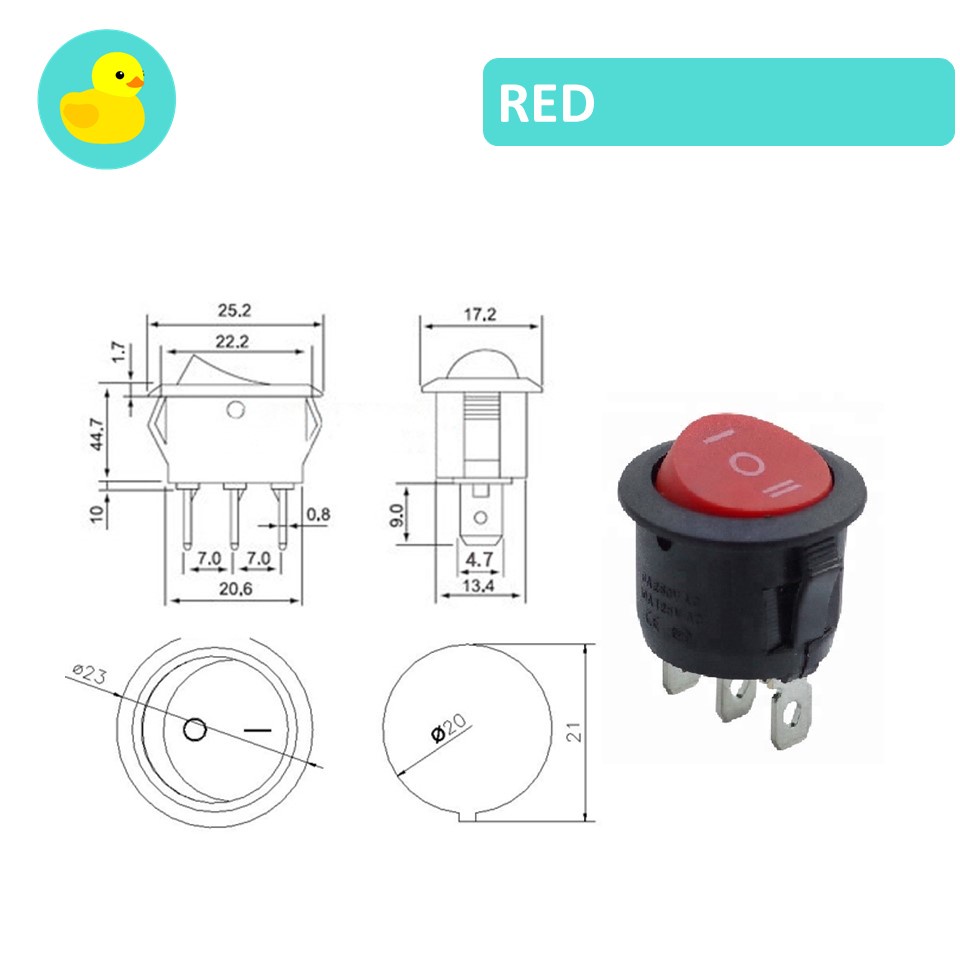 KCD1 On/Off/On 3 Position Rocker Switch 250VAC 6A