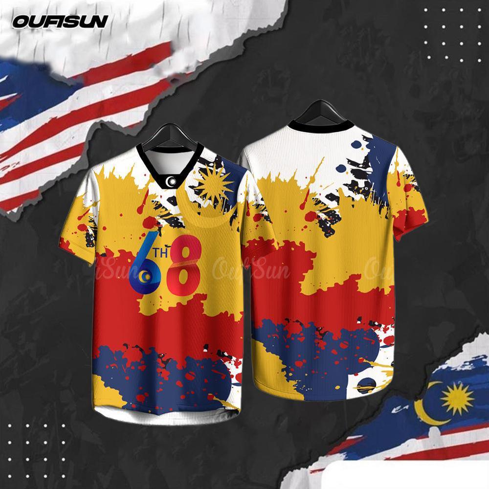 Baju Merdeka 2025 Independence Day Patriotic T-Shirt For Men 68th Anniversary Flag Pattern Patriotic Casual T-Shirt Holiday Short Sleeve Top