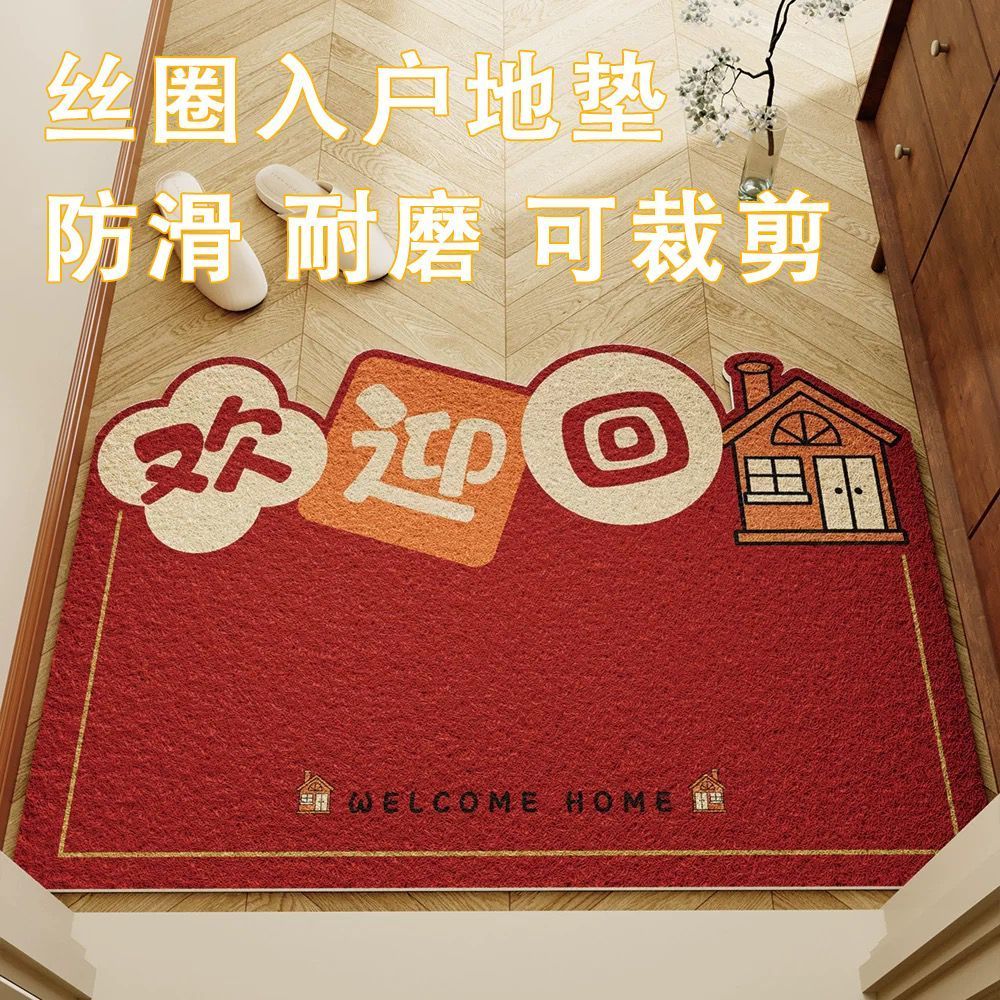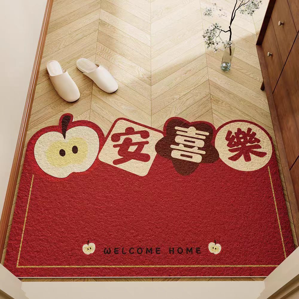 【Spots现货】平安喜乐丝圈入户地垫防滑耐磨耐脏入户门蹭土脚垫可裁剪丝圈地垫Ping An Happy Silk Circle Home Mat Non-slip Wear-resistant