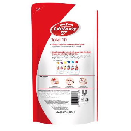 Lifebuoy Antibacterial Shower Gel Refill 850ml - TOTAL 10 【READY STOCK】