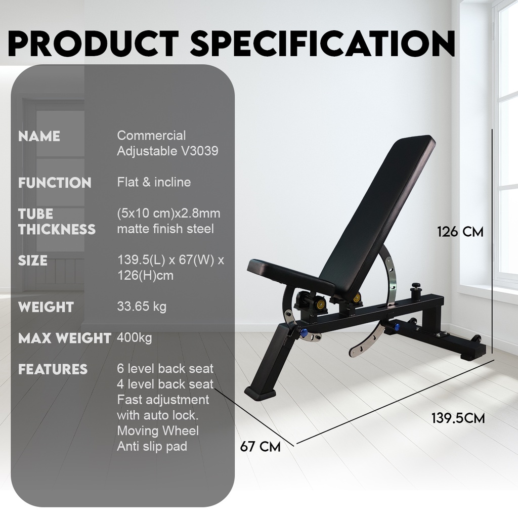Commercial Dumbbell Bench Press Adjustable Weight Bench / Bangku Tekan Dumbbell Komersial dengan Berat Boleh Laras