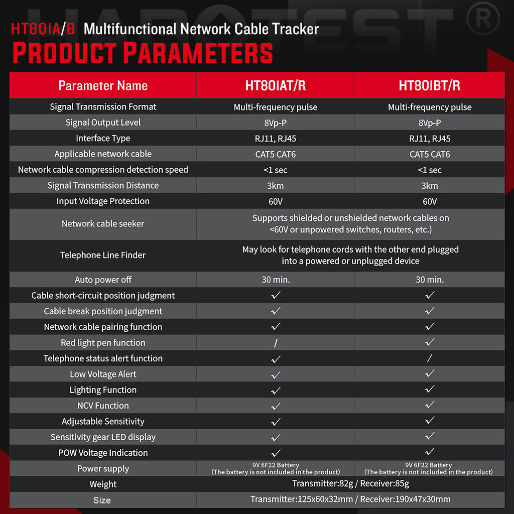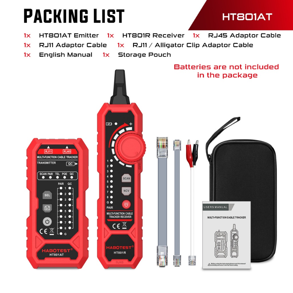 HABOTEST HT801A/B Ethernet LAN Network Cable Tester Line Detector RJ11 RJ45 Cat5 Cat6 Phone Tracking Cable Tracer Toner