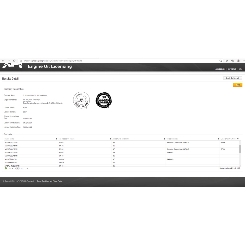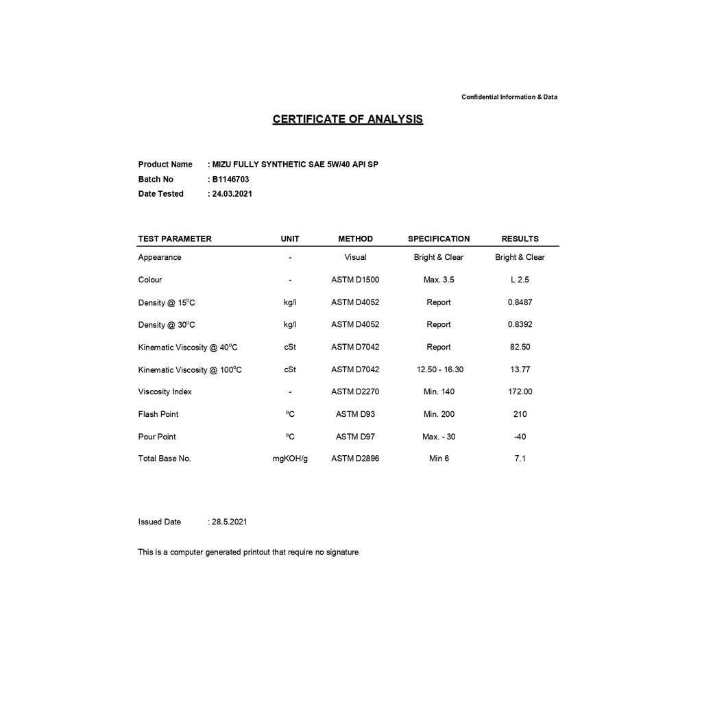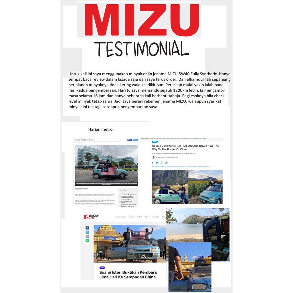 MIZU 5W40 API SP SIRIM Ester plus Fully Synthetic Oil 4L 5w40 minyak pelincir all car perodua Toyota honda proton