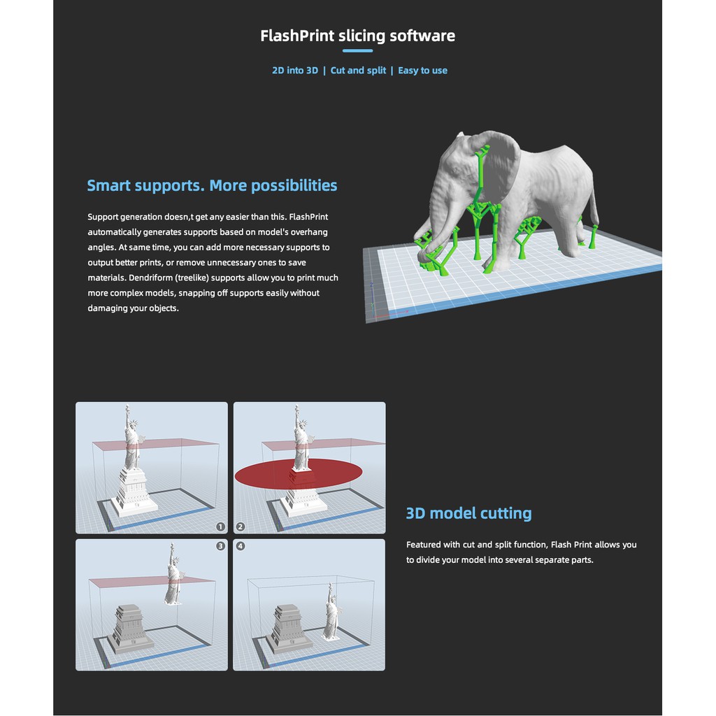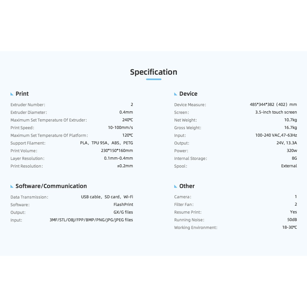 3D Printer Printing Machine Touch Screen Camera FlashPrint USB SD Card Wi-Fi Filament PLA TPU ABS PETG