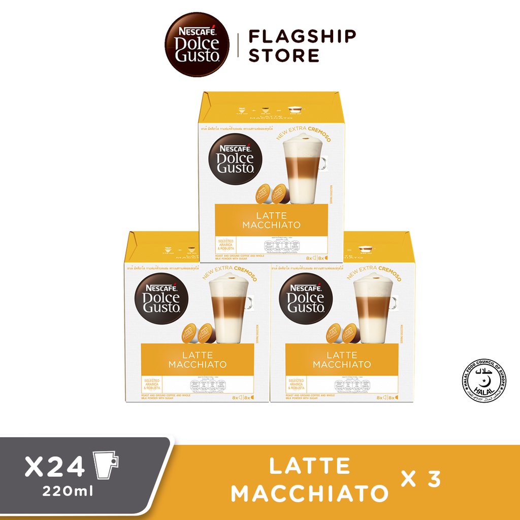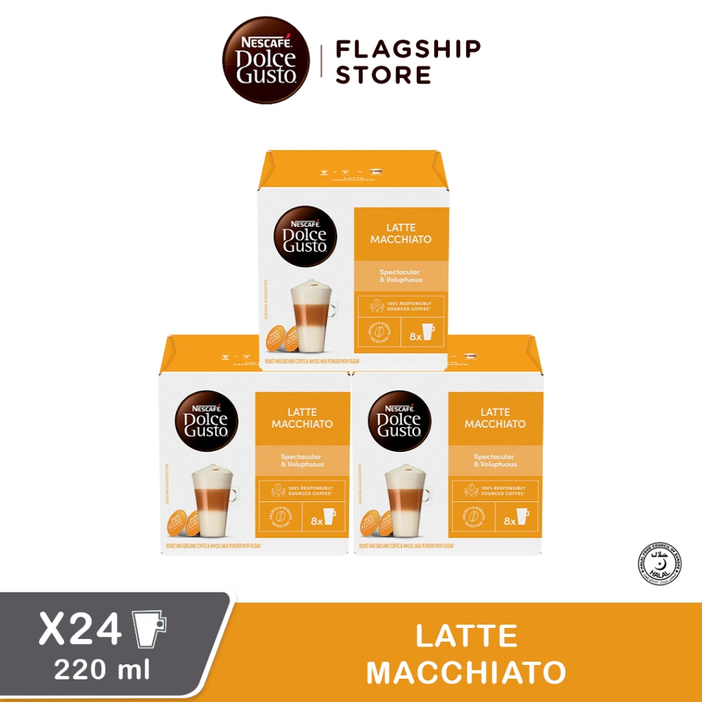 [Pack of 3] NESCAFE Dolce Gusto Latte Macchiato Coffee Capsules, Box of 8+8, 8 Servings [Packaging may vary]