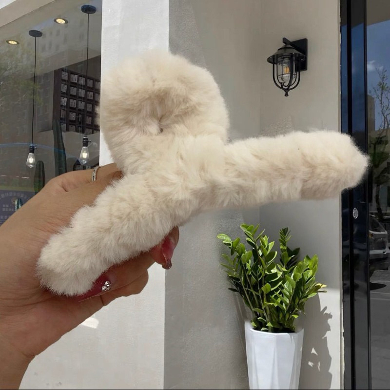 A47现货✨13cm特大号鲨鱼夹Super Large Hair Clip 韩系奶咖色发饰交叉盘发抓夹大号毛绒后脑勺发夹发抓 Cute Flurry Pastel Colour Fluffy Hair Claw Furry HairClip