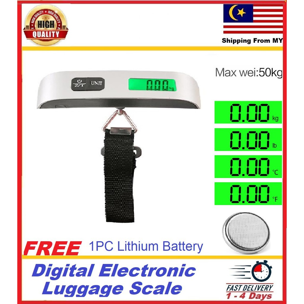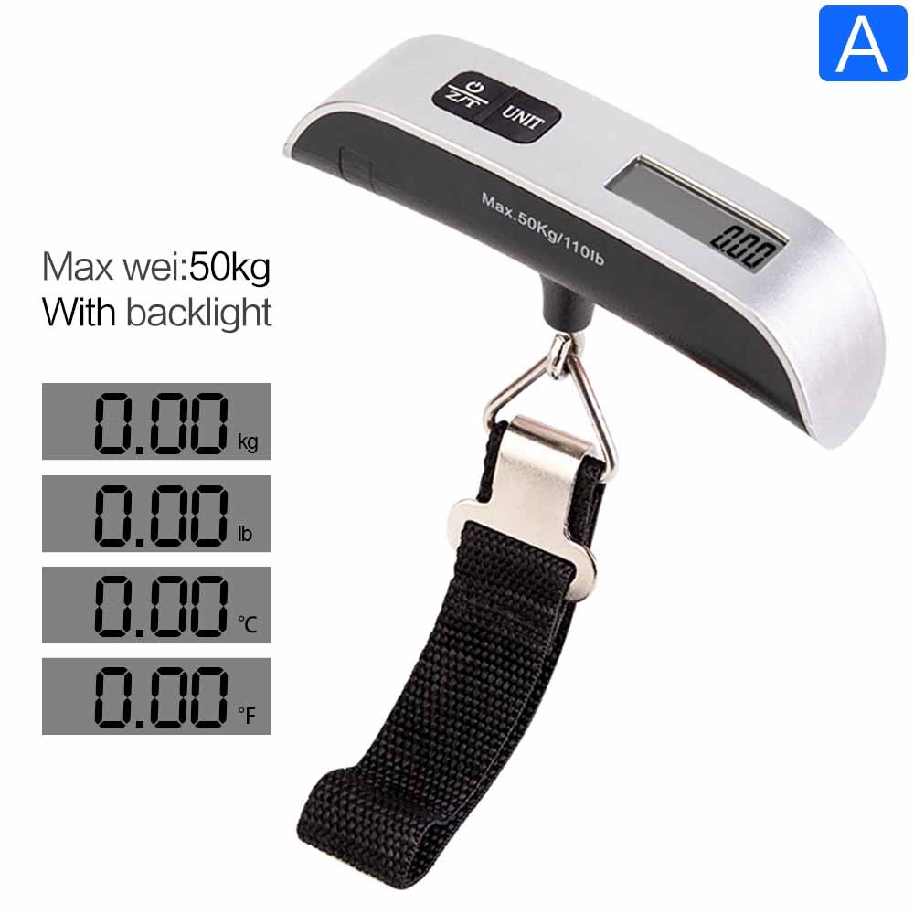 50kg/110lb Digital Electronic Luggage Scale Portable Suitcase Scale Handled Travel Bag Weighting Strap Hanging Scale