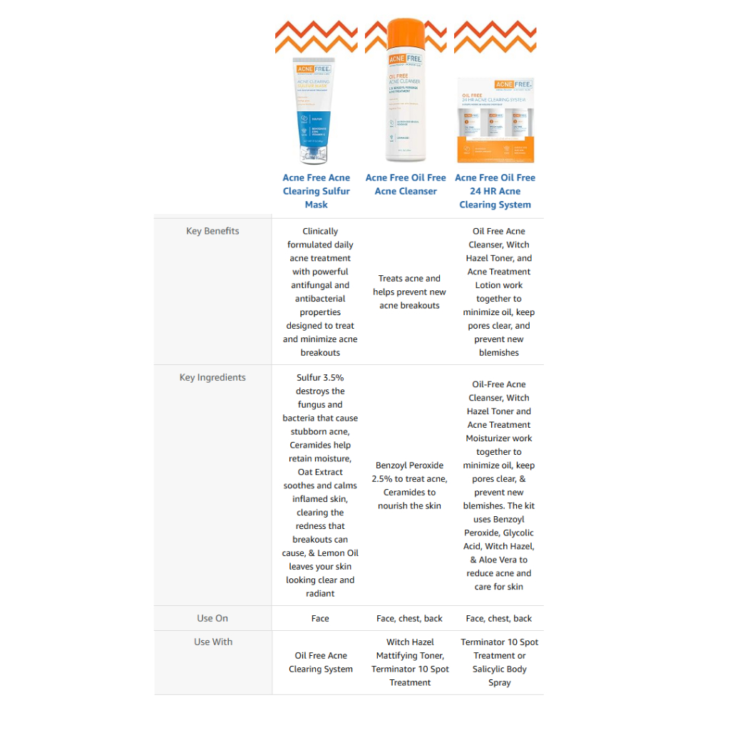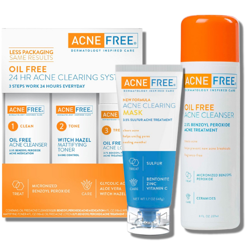 AcneFree Oil-Free Acne Cleanser | Clearing Mask | 3 Step Treatment Kit Face Wash with Glycolic Acid to Prevent Breakout