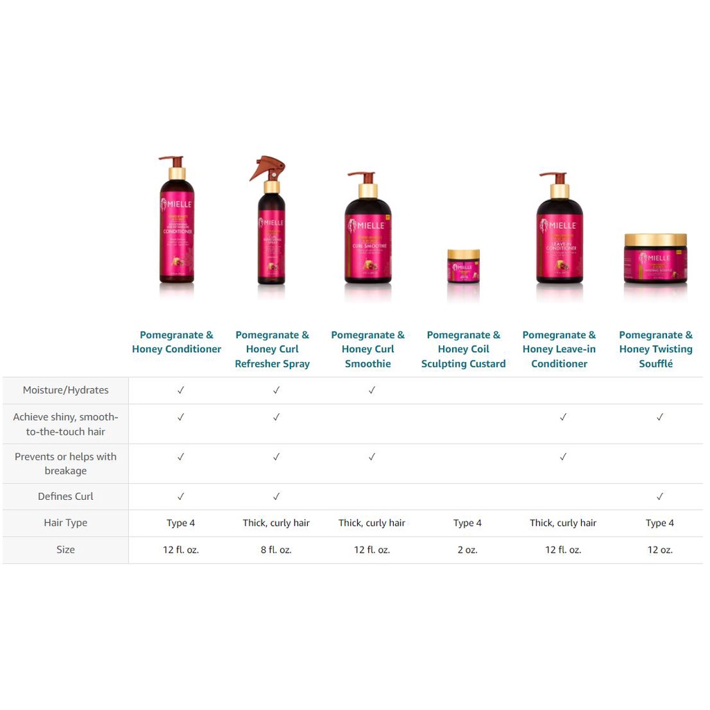 [ iiMONO ] Mielle Organics Pomegranate & Honey Leave-In Conditioner | Curl Smoothie | Custard | Souffle | Shampoo Spray