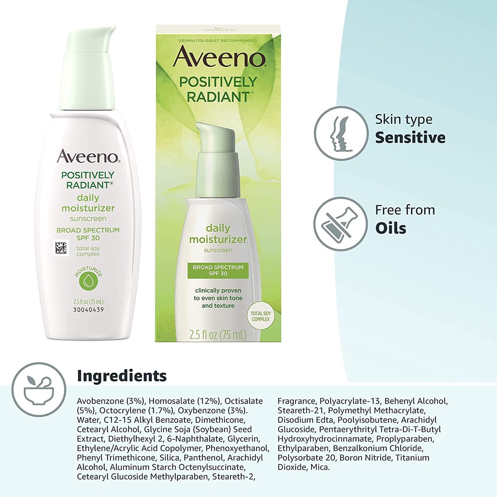 Aveeno Positively Radiant Skin Daily Moisturizer Spf | Brightening Facial Cleanser Scrub | Night Cream | Gel | Body Wash