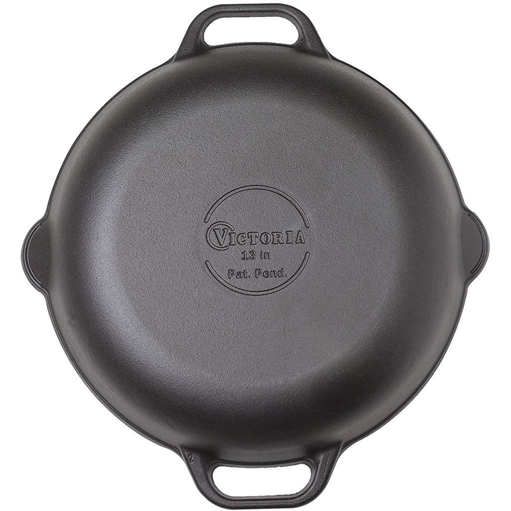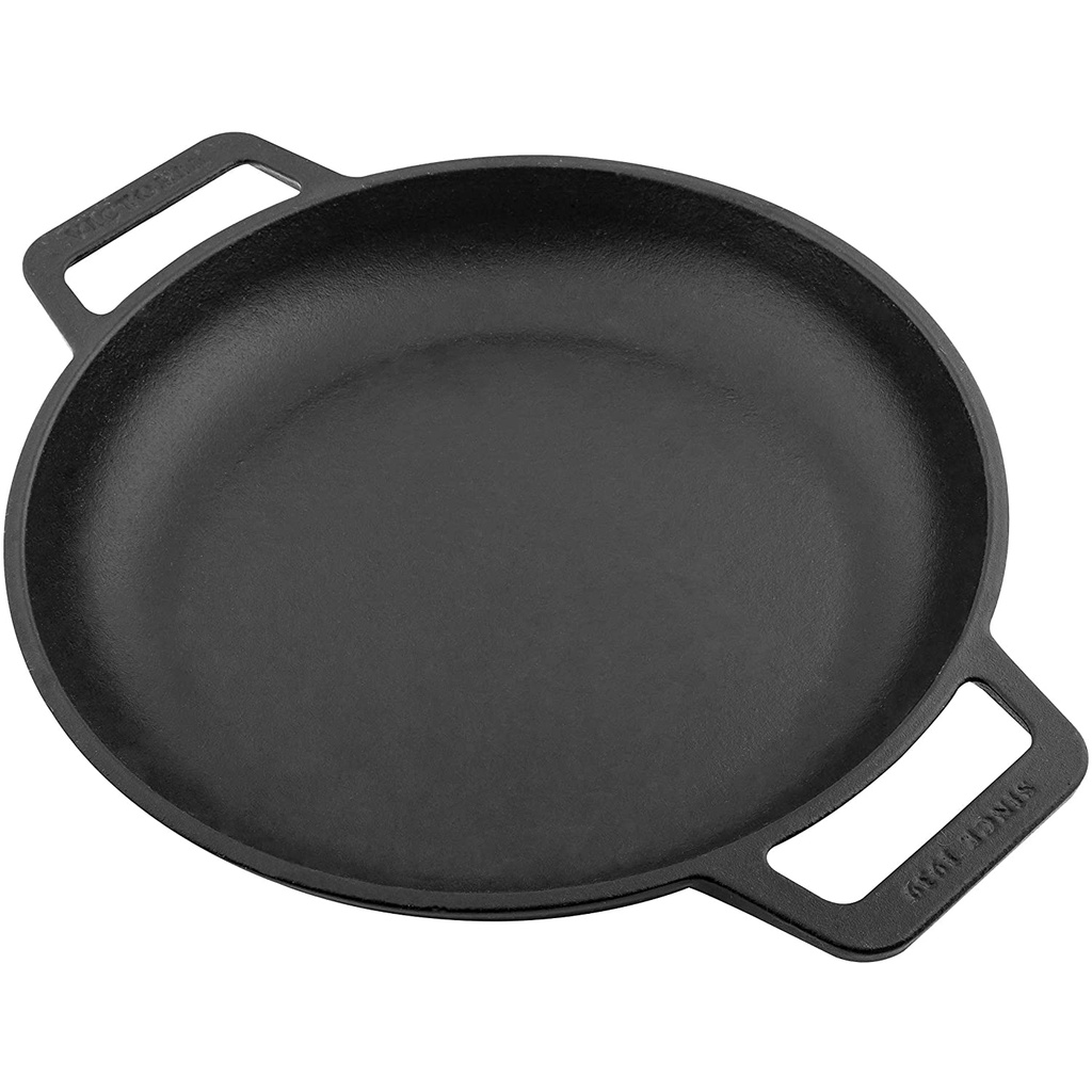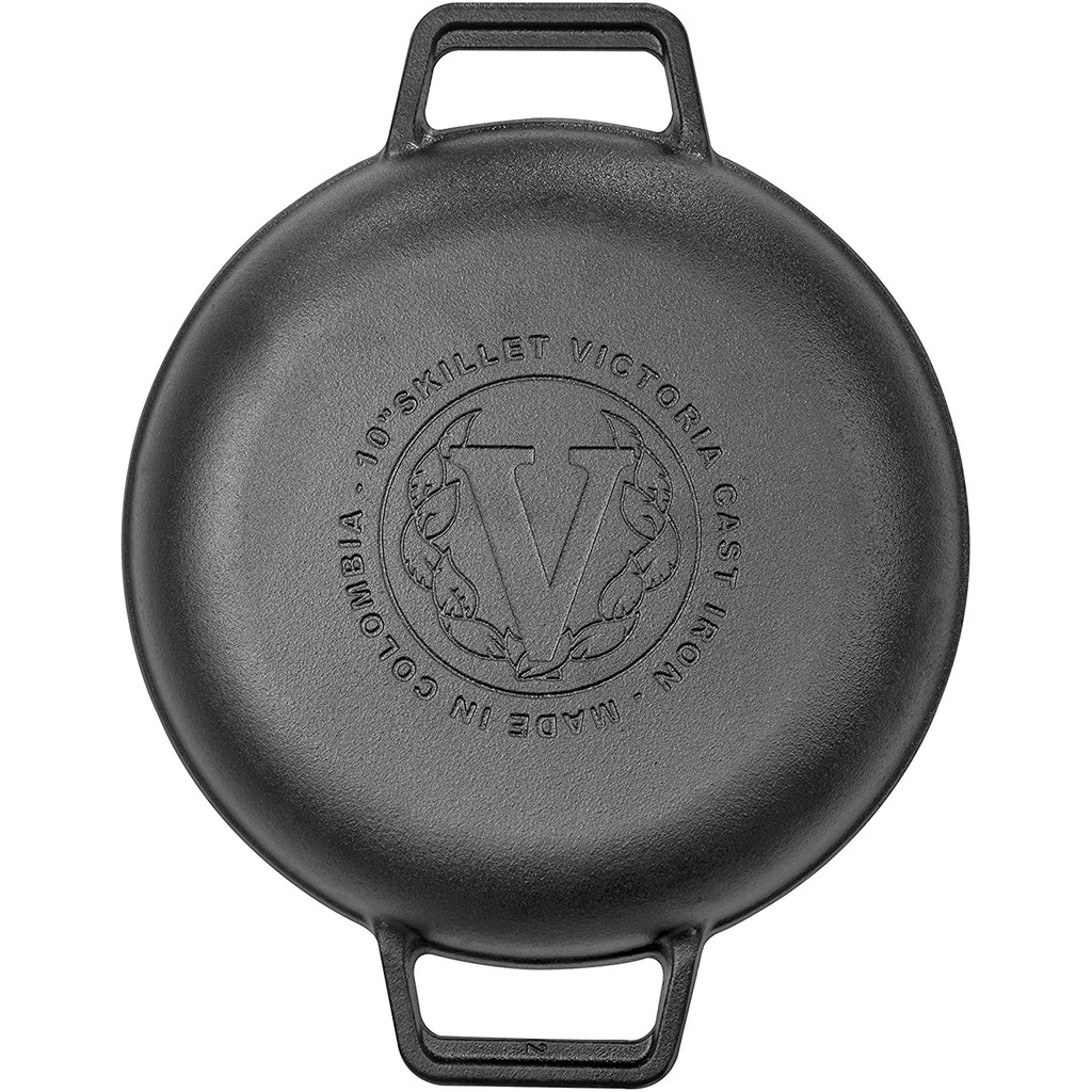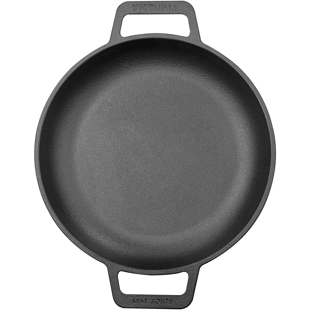 Victoria Cast Iron Round Skillet with Double Loop Handles Seasoned with 100% Kosher Certified Non-GMO Flaxseed Oil
